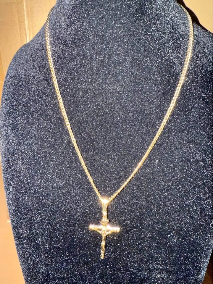 18K Gold fill Necklace 18 In. Miami Cuban 18k Gold Fill Jesus pendant Great gift! Tarnish-proof and waterproof, you can rock it all day. Perfect for any occasion Safe For All Skin Types the product is hypoallergenic and nickel free, making it perfect for those with sensitive skin. Shipping available!