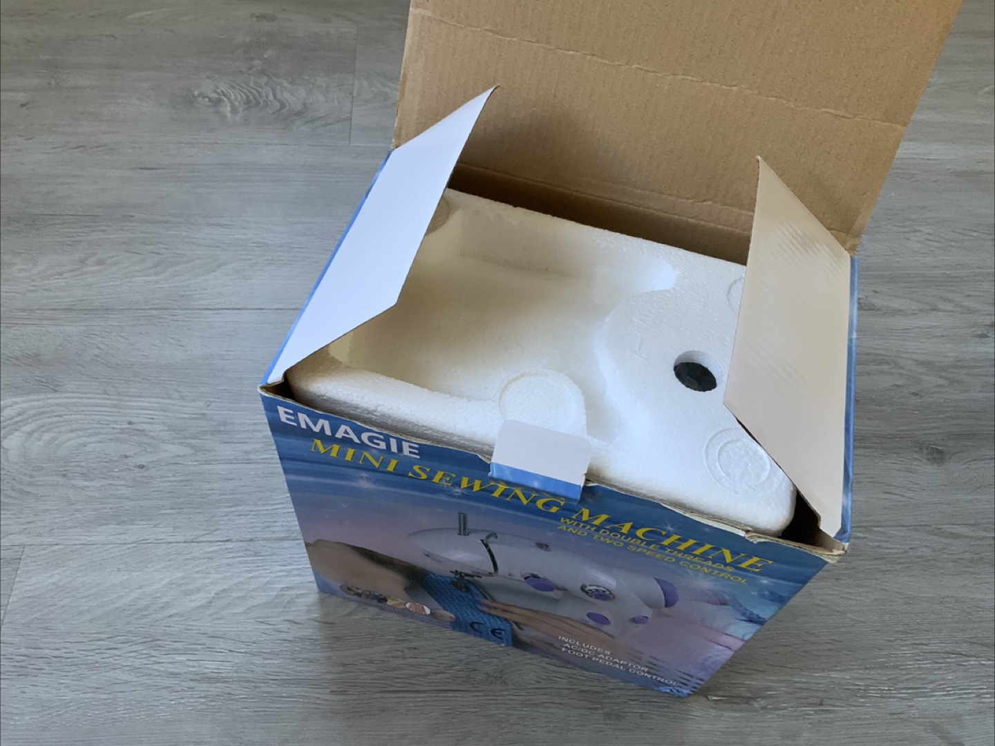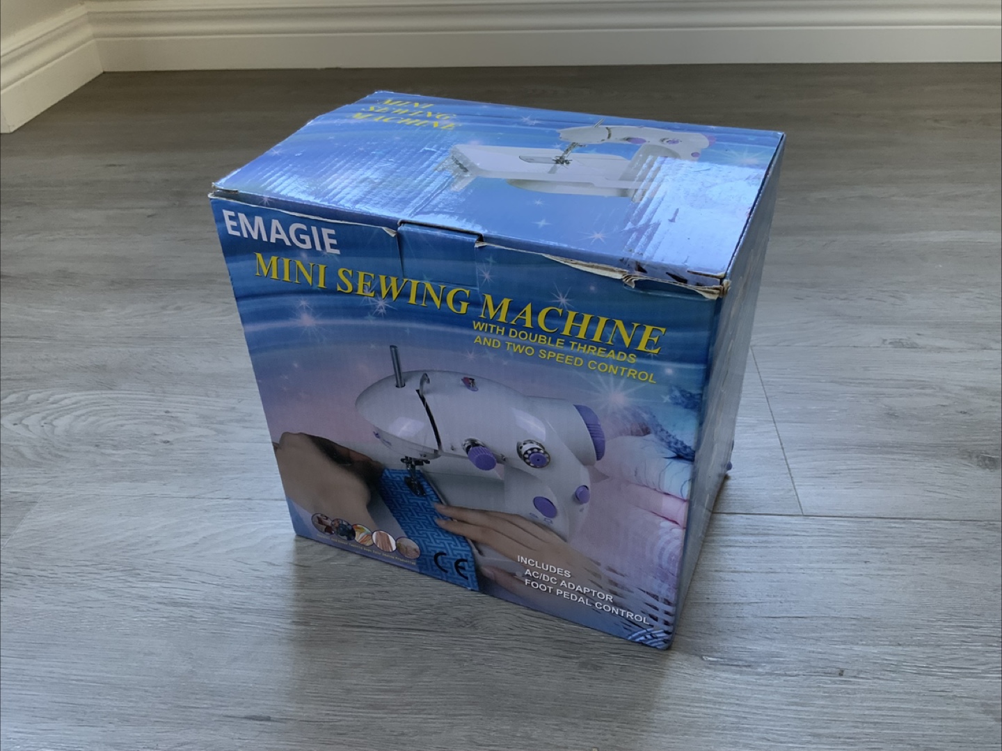 Selling an Emagie mini sewing machine! It comes with double threads and two speeds for easy use. It also includes the AC/DC adaptor and foot pedal control. The box is included!