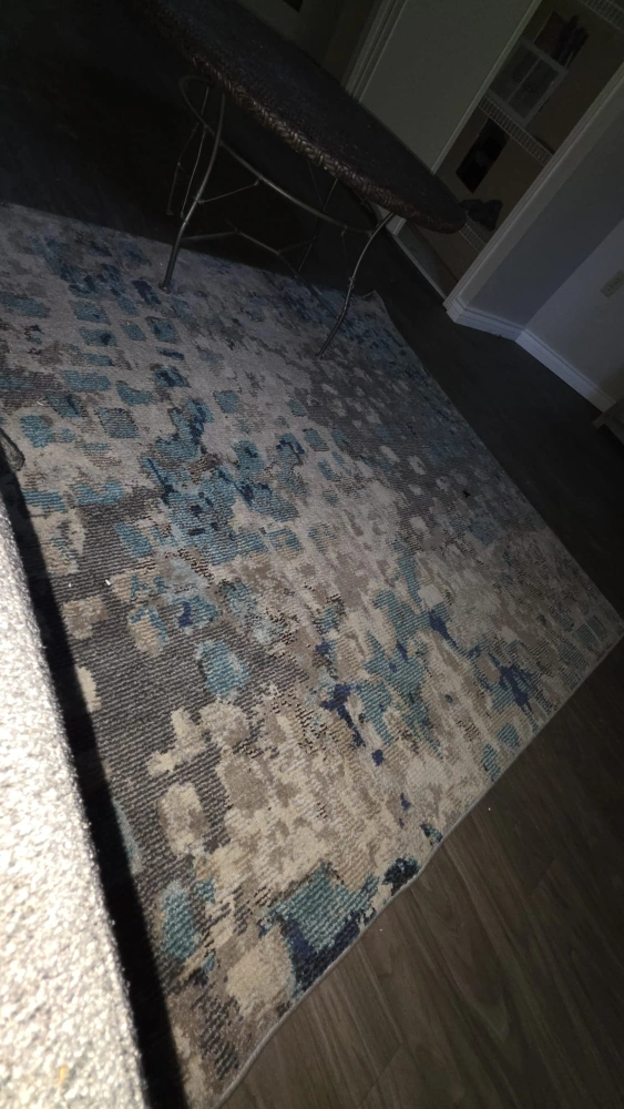 Area rug in a blend of blue, grey, and beige tones! It's in good condition and would add a nice touch to any room. Ready for a new home!