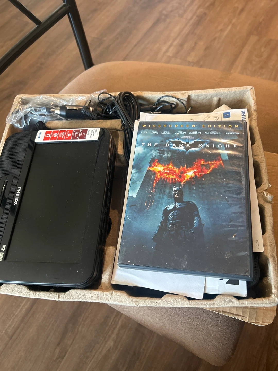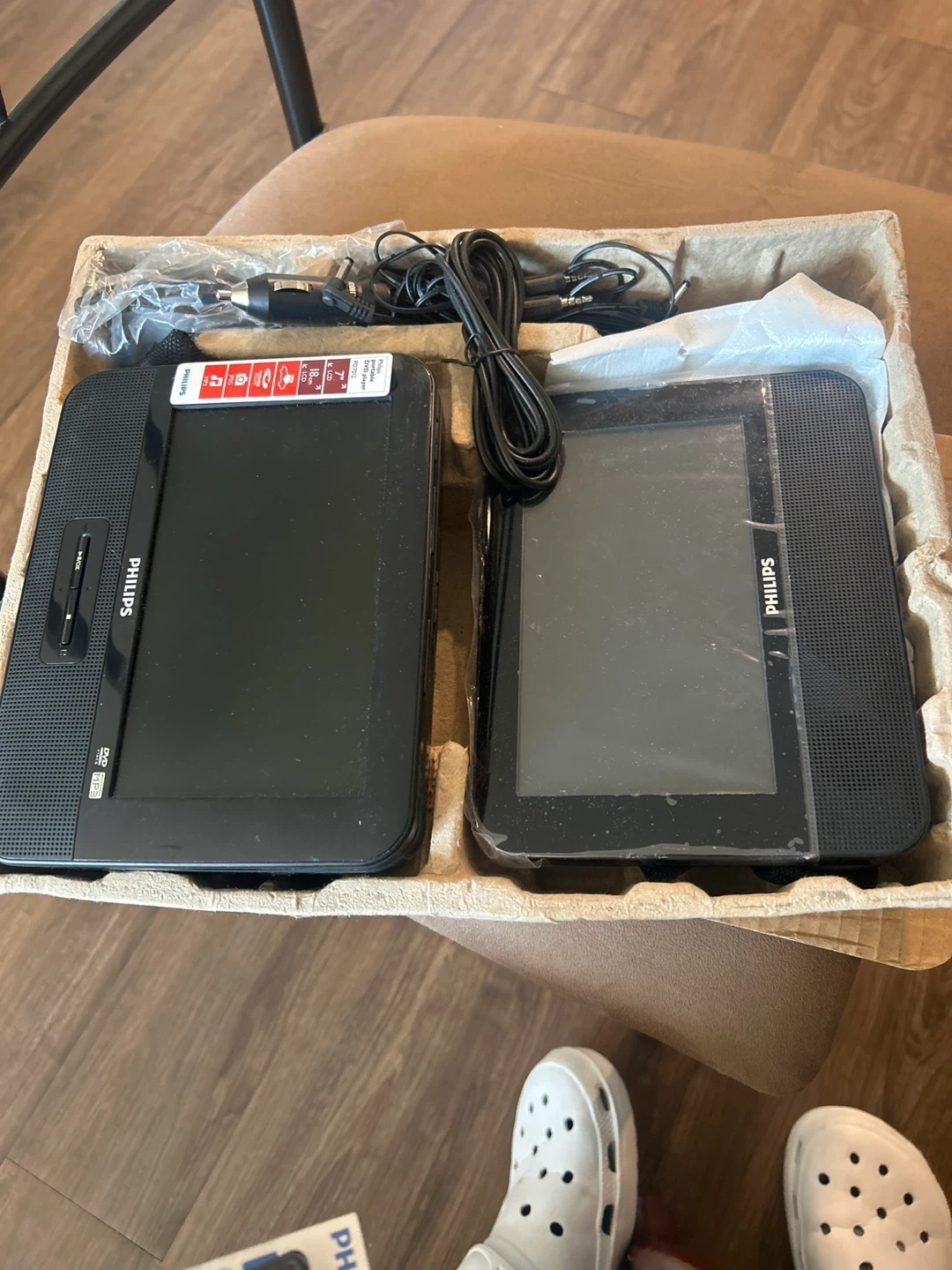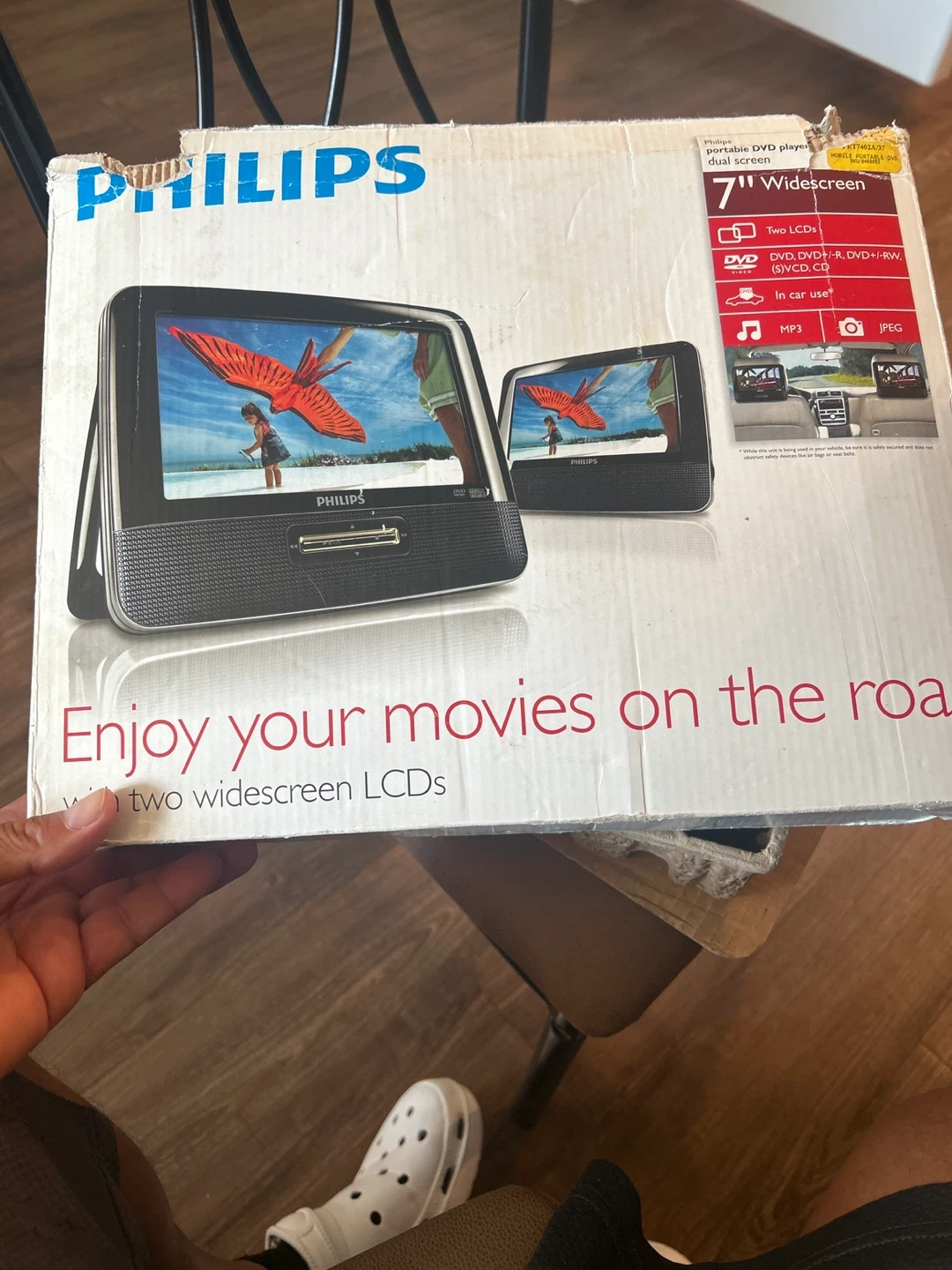 Selling a Philips portable DVD player with dual screens! It's perfect for enjoying movies on the road. The set includes two 7" widescreen LCDs and everything comes in the original box