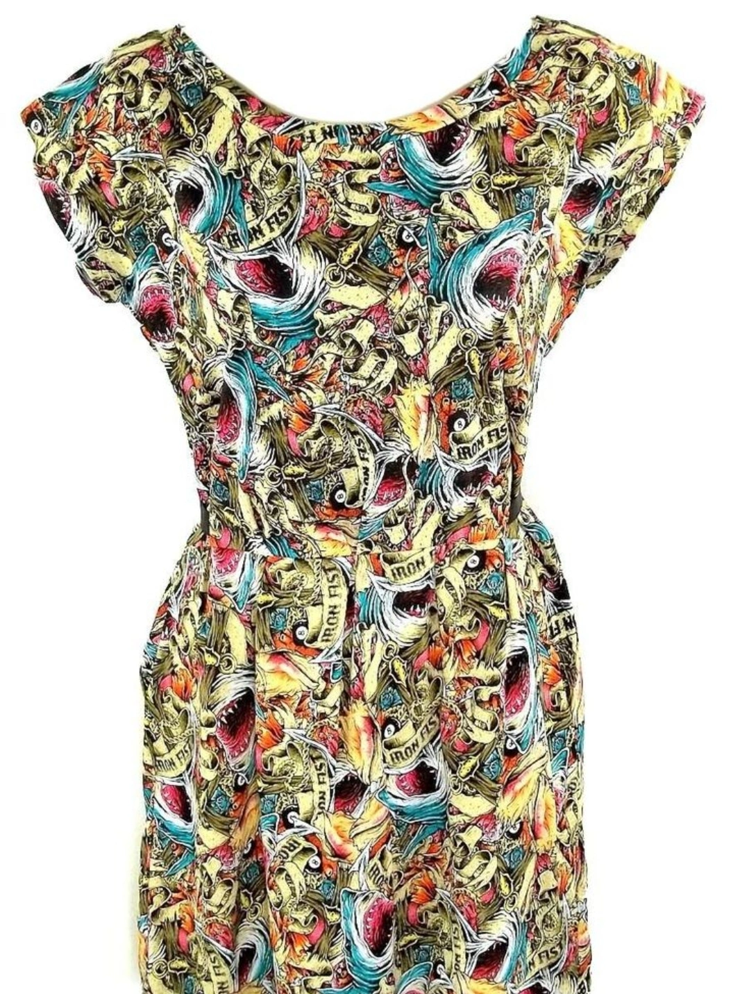 Iron Fist Shark Attack Print Dress - Size L (with pockets!)