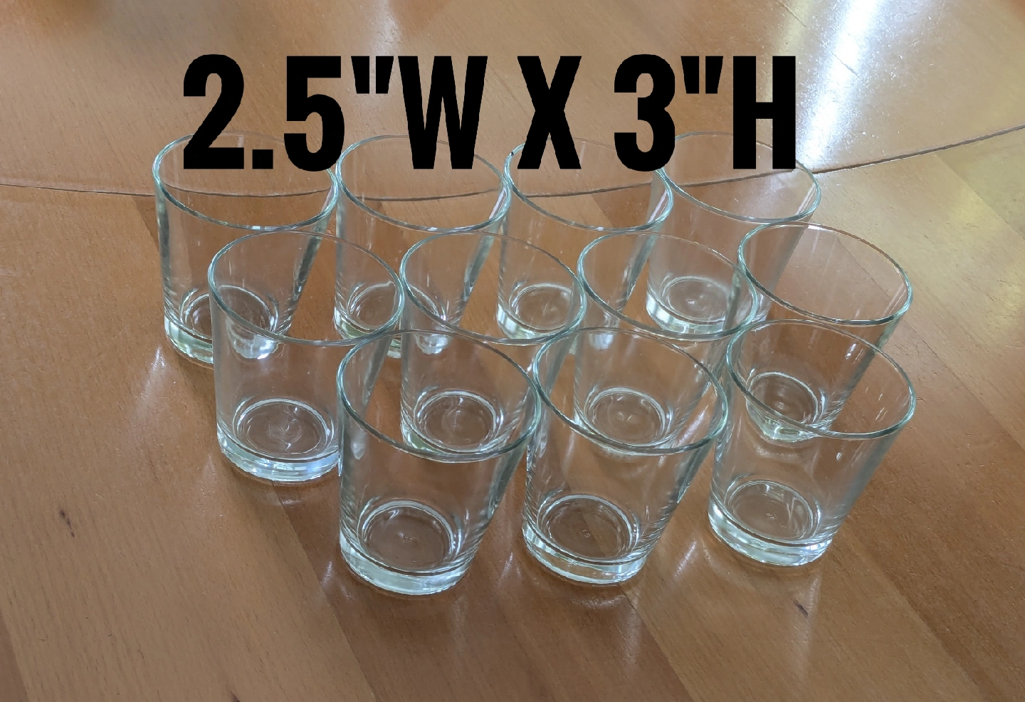 Selling a set of 11 clear glass cups. can be used as candle holder or drink cups. Each one measures approximately 2.5" wide and 3" high. Perfect for adding a touch of warmth to any space!