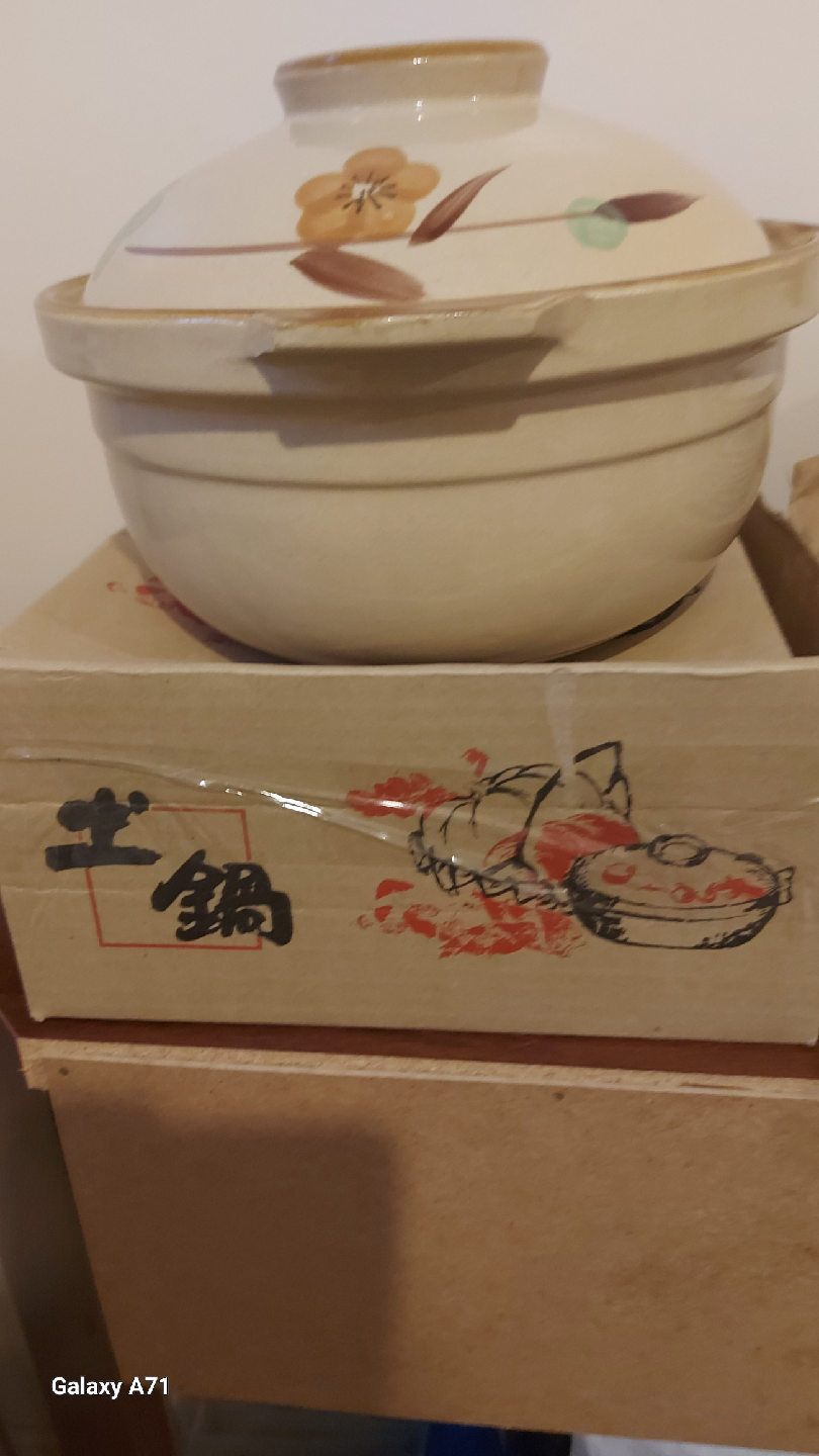 Selling a traditional Japanese Donabe clay pot with a lid. It's in great condition and comes with its original box. Perfect for making hot pot or stews!