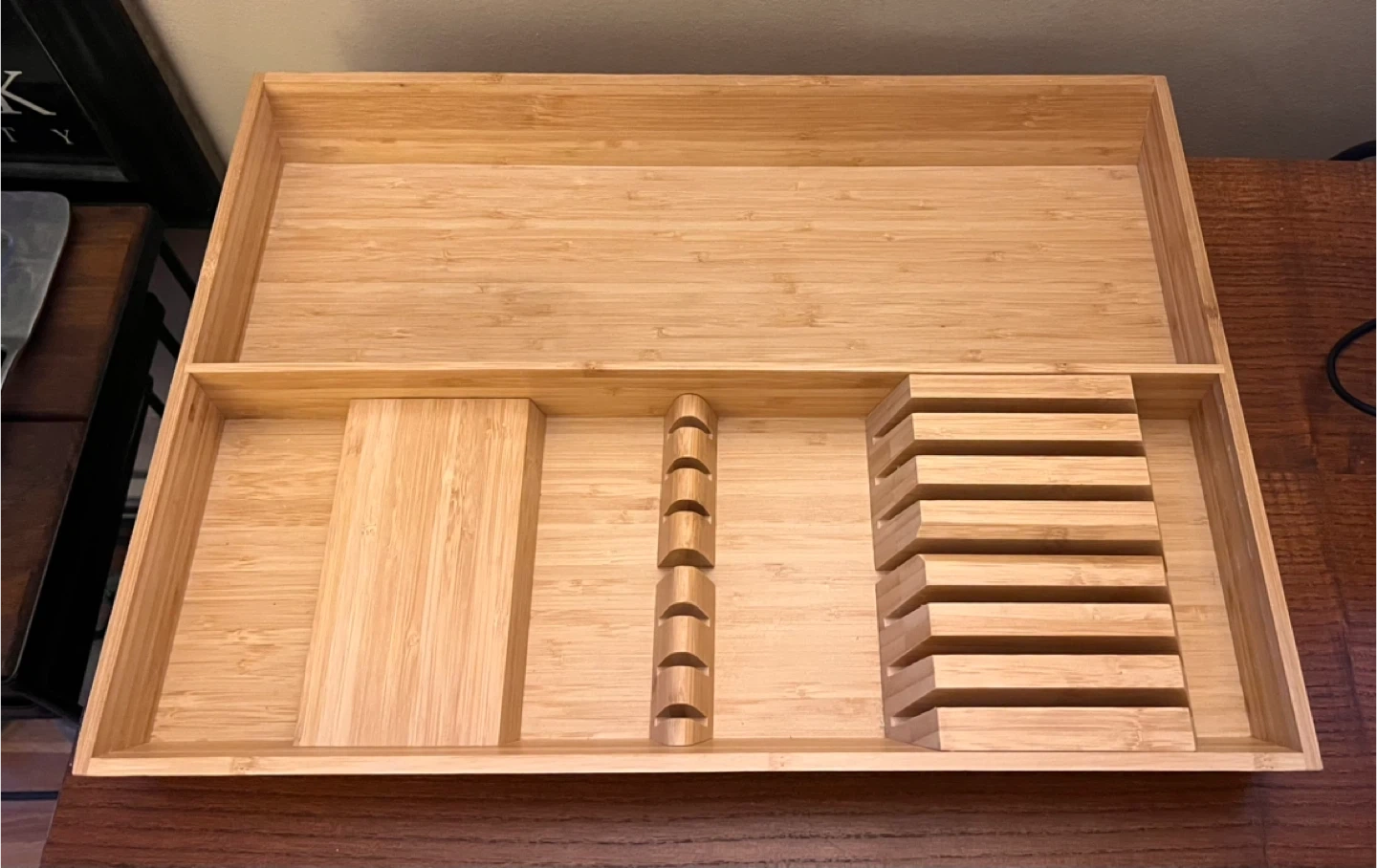 Like new! Retails for $40+tax. Used for a few months in my prior apartment, and no longer need. Durable, easy to clean natural bamboo tray with dovetail assembly. Fits perfectly in most kitchen drawers, or you can use on countertop/in your pantry to organize your kitchen utensils. Dimensions: 19 5/8” L x 14 5/8" W x 2.25" H Discontinued item. Pick up only near Astoria Park, Queens NYC 11102 Only Cash (preferred) or Venmo for payment Check out my other listings!