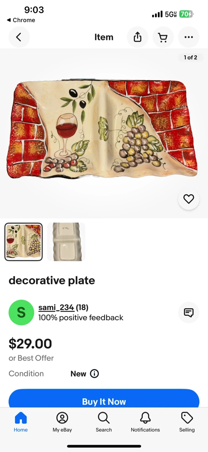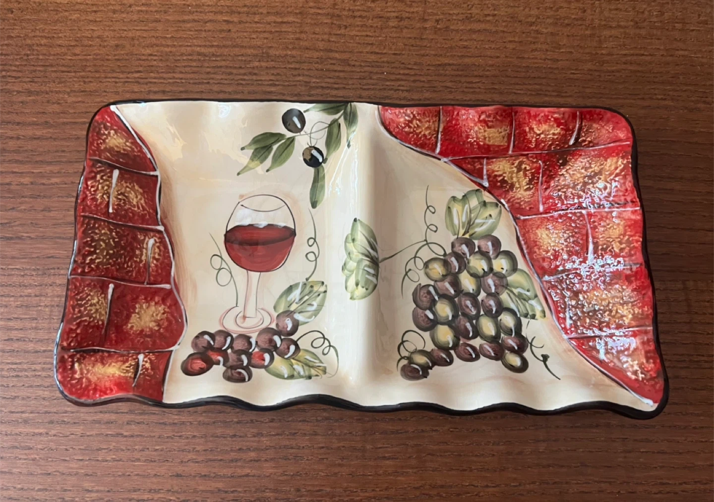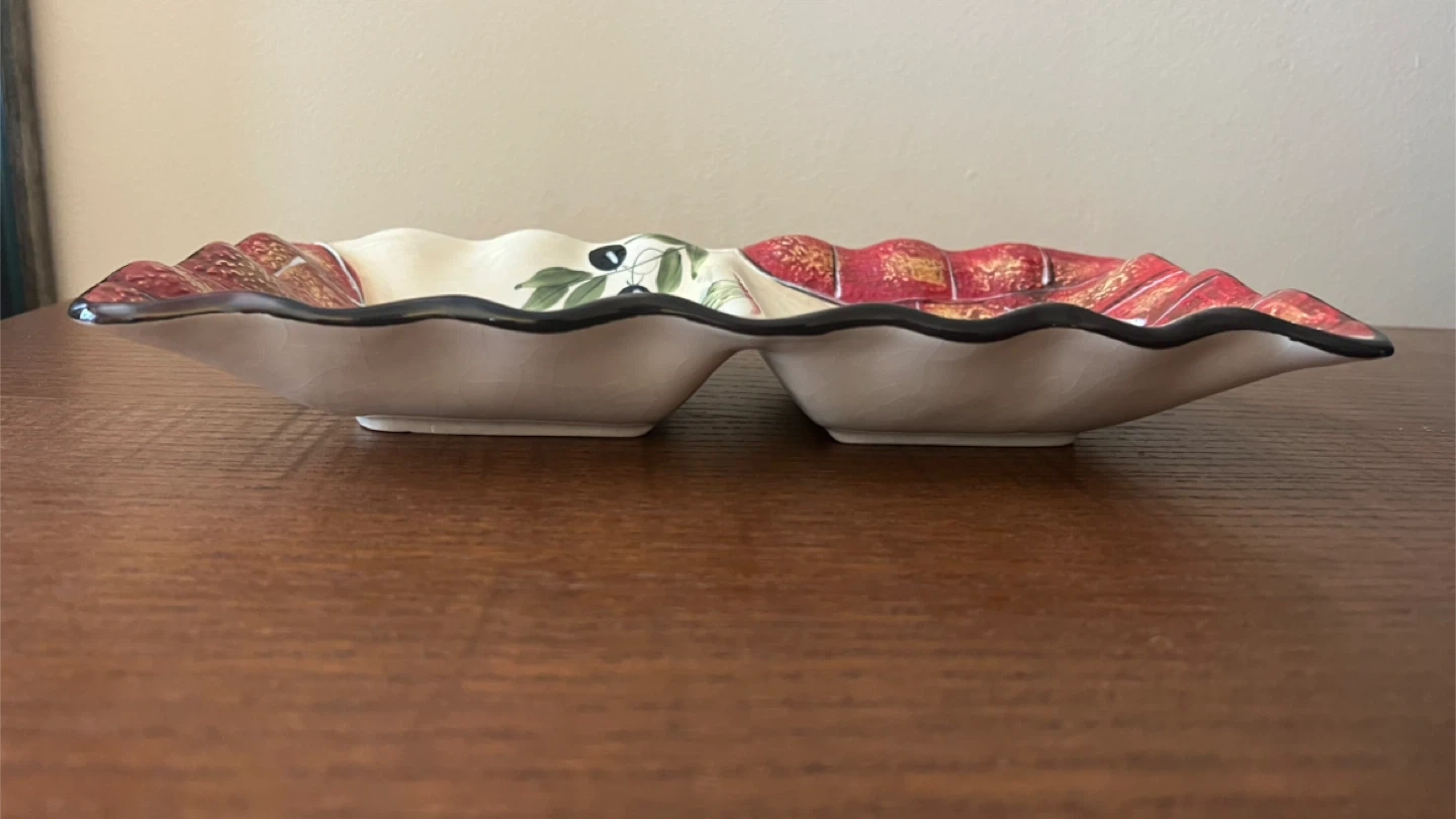 55Like new - no chips or scratches. Clearing out my storage space and no longer need. Tuscan inspired, colorful 2-section platter Durable ceramic hand painted with a highly glazed finish Versatile dish can be used to serve dips, sauces, cheese, crackers, fruit, etc Hand washing recommended Dimensions: 12” L x 7.5” W x 1.75” H Pick up only near Astoria Park, Queens NYC 11102 Only Cash (preferred) or Venmo for payment Check out my other listings!