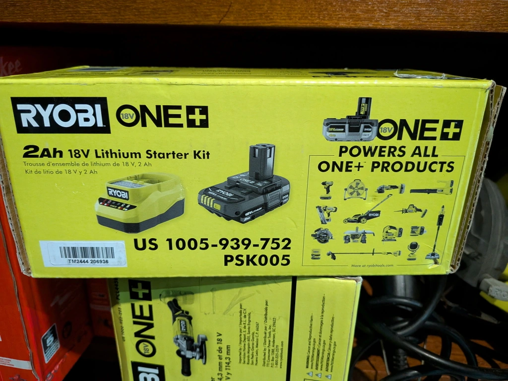 Selling a brand new Ryobi ONE+ 2Ah 18V Lithium Starter Kit! This kit includes everything you need to get started with the Ryobi ONE+ system. Powers all ONE+ products. Perfect for any DIY enthusiast or professional looking to expand their tool collection. Box included