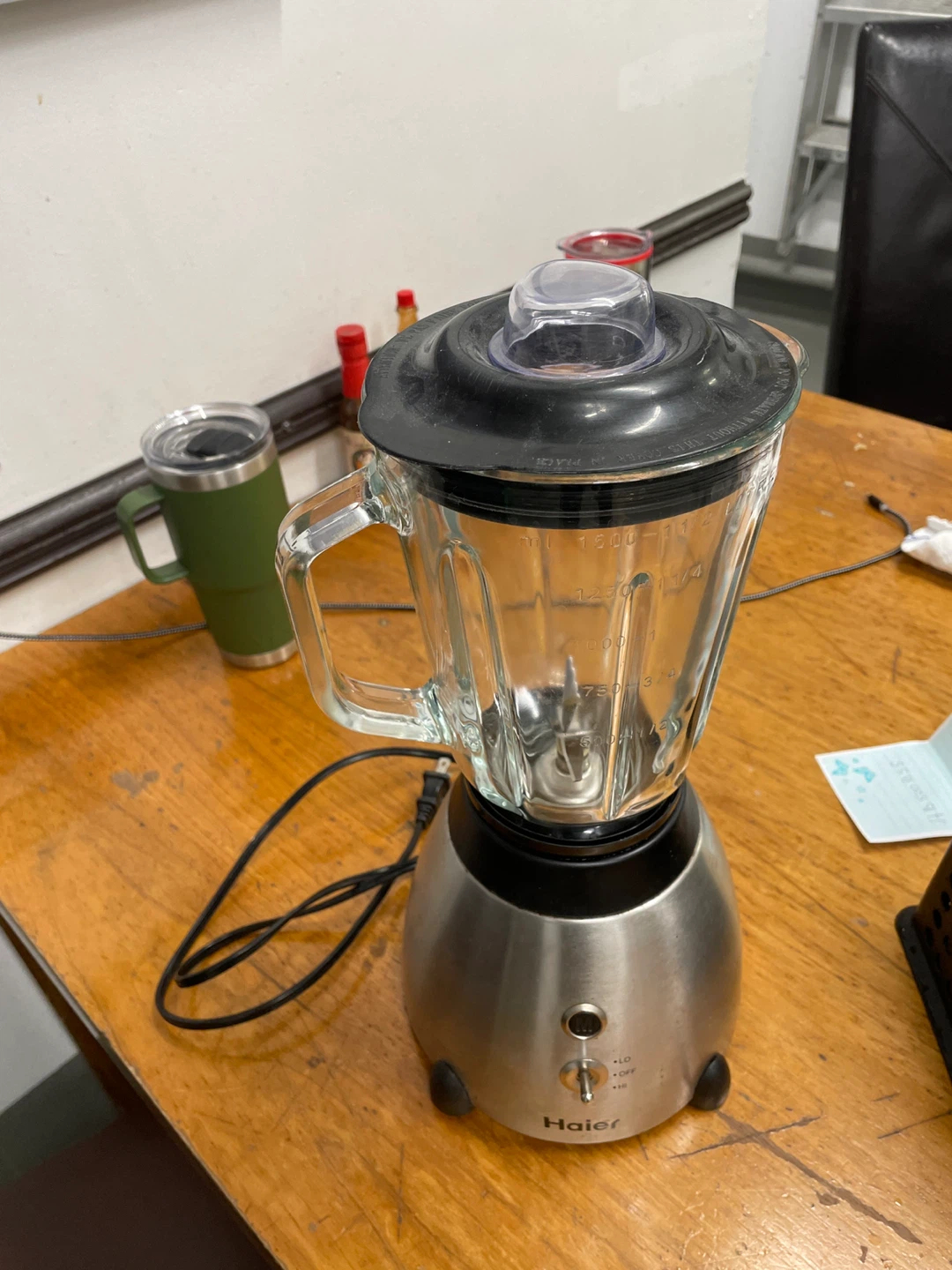 I'm selling a Haier blender. It has settings for low, off, and high. It's perfect for making smoothies or blending ingredients for cooking!