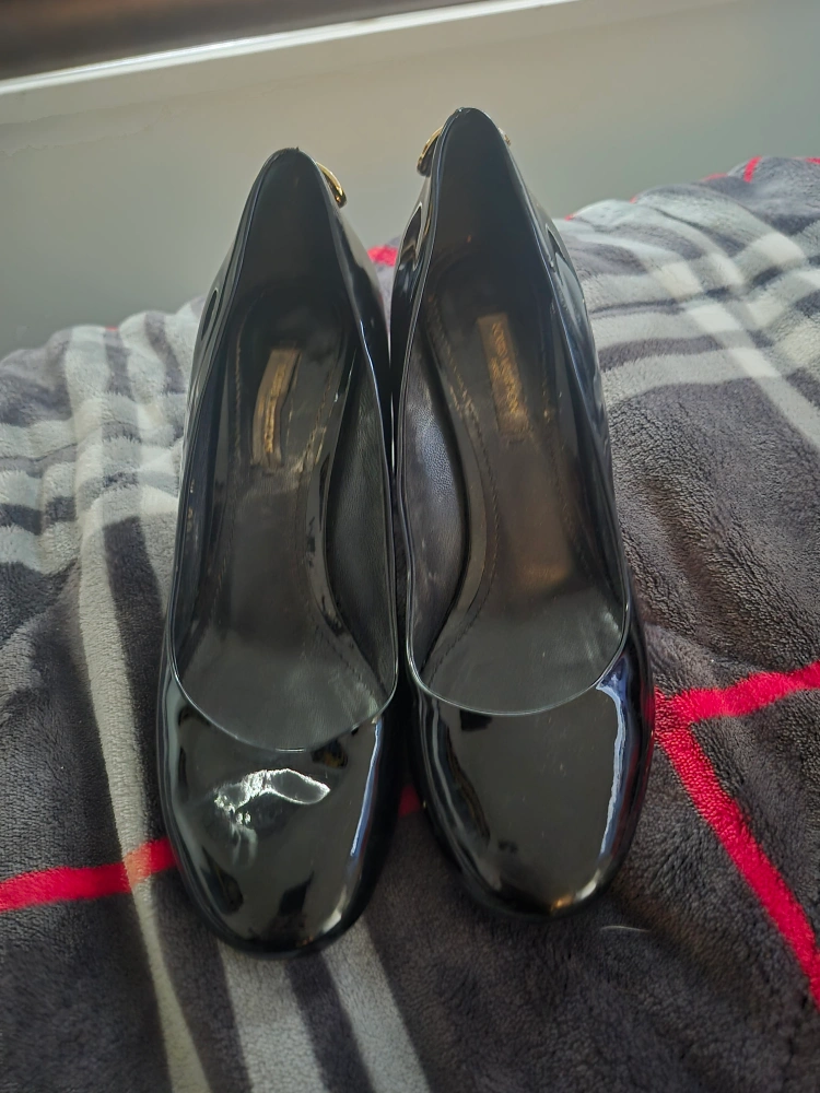 Selling a pair of Louis Vuitton heels in black patent leather! They are a size 36 and feature a cute lock detail on the back. Made in Italy not even worn outside the house. they were a gift but they just aren't my style of shoe
