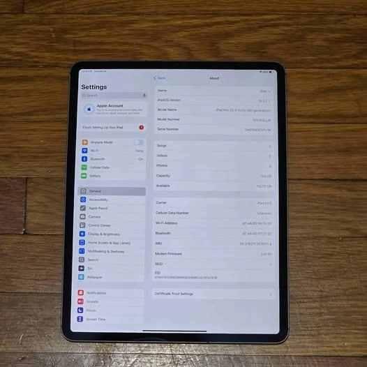 128GB iPad Pro 12.9" 4th Gen (Wi-Fi + cellular) Space Gray