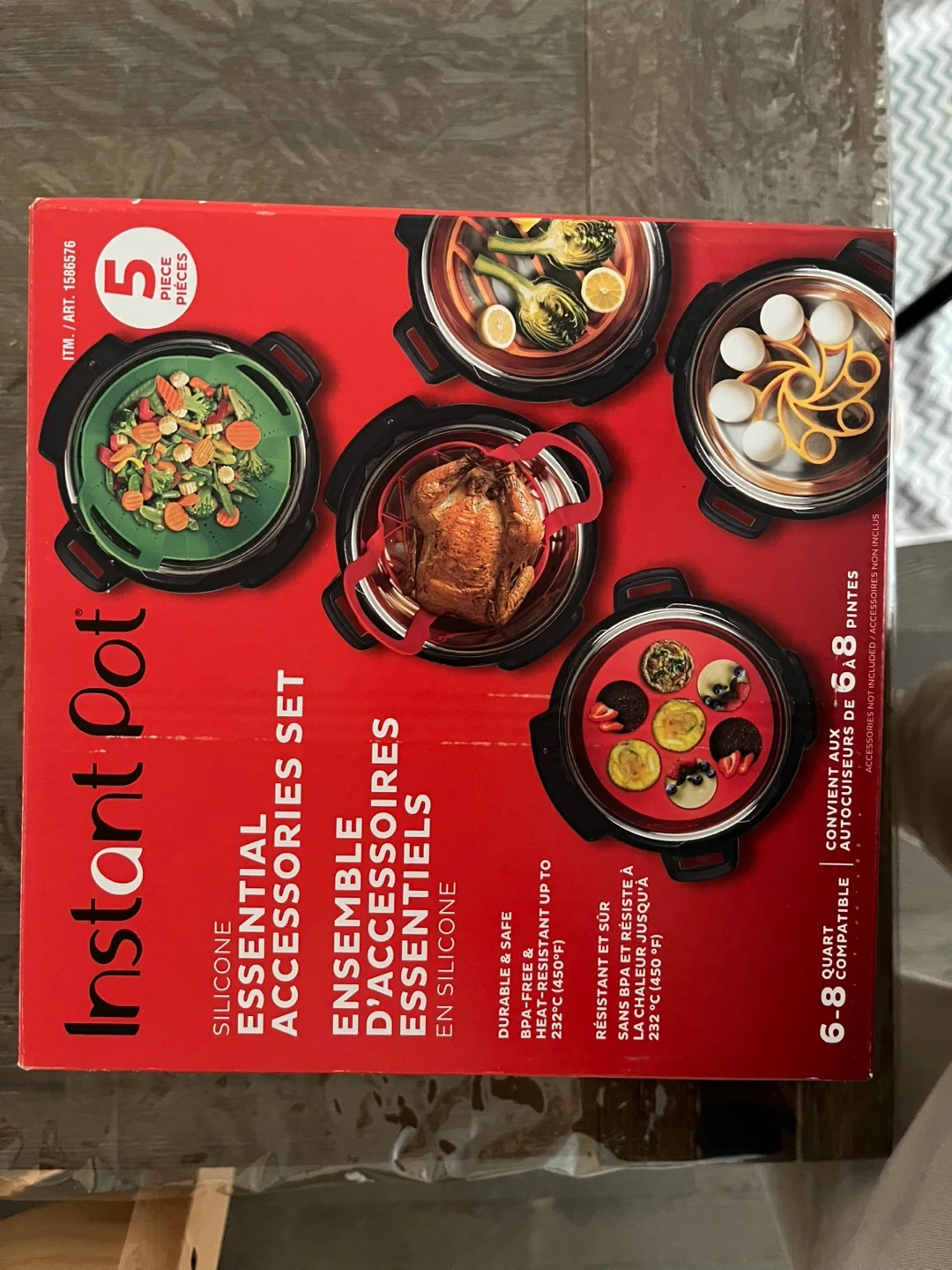Selling a 5-piece Instant Pot silicone accessories set. This set includes essential accessories for your Instant Pot, making cooking even easier. The accessories are made of durable and safe silicone, heat-resistant up to 232°C (450°F). Perfect for steaming, baking, and more!