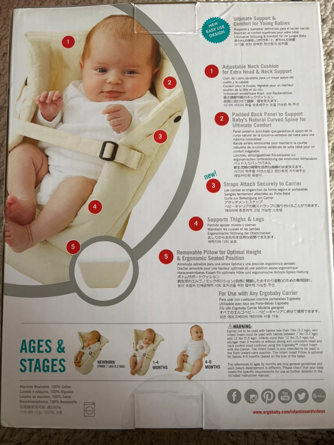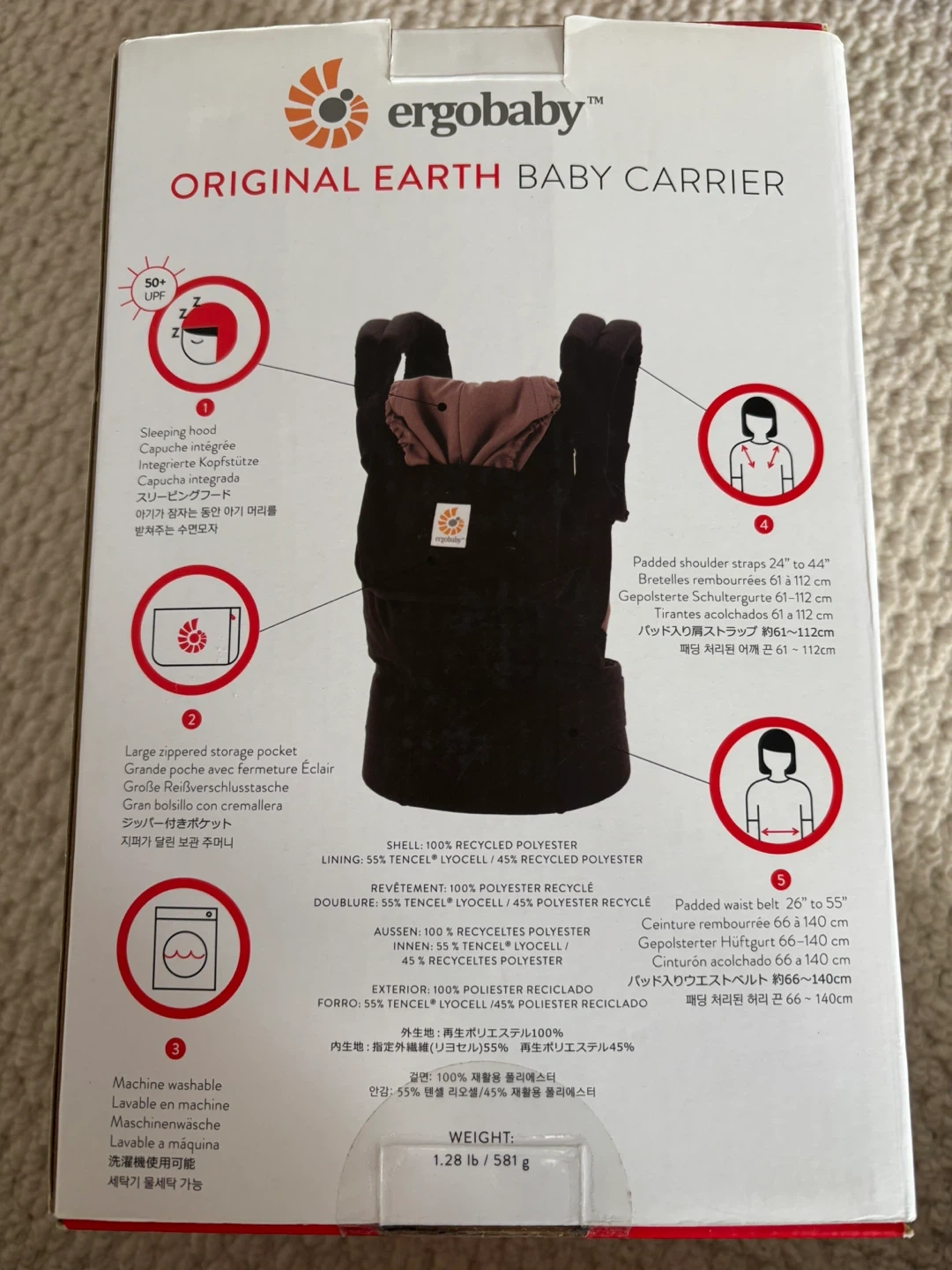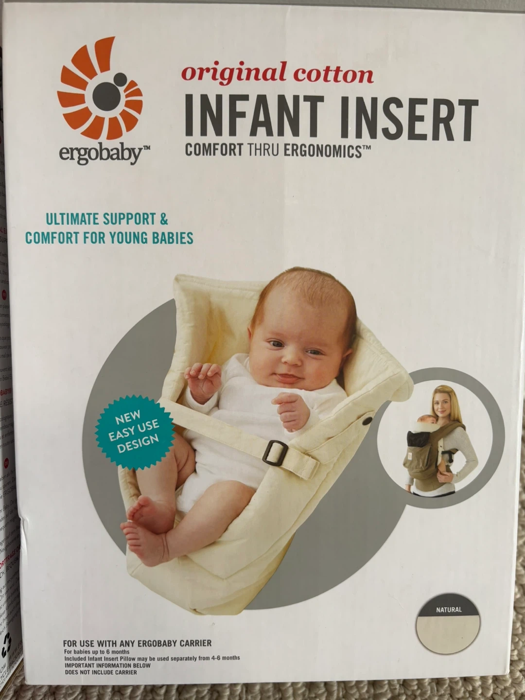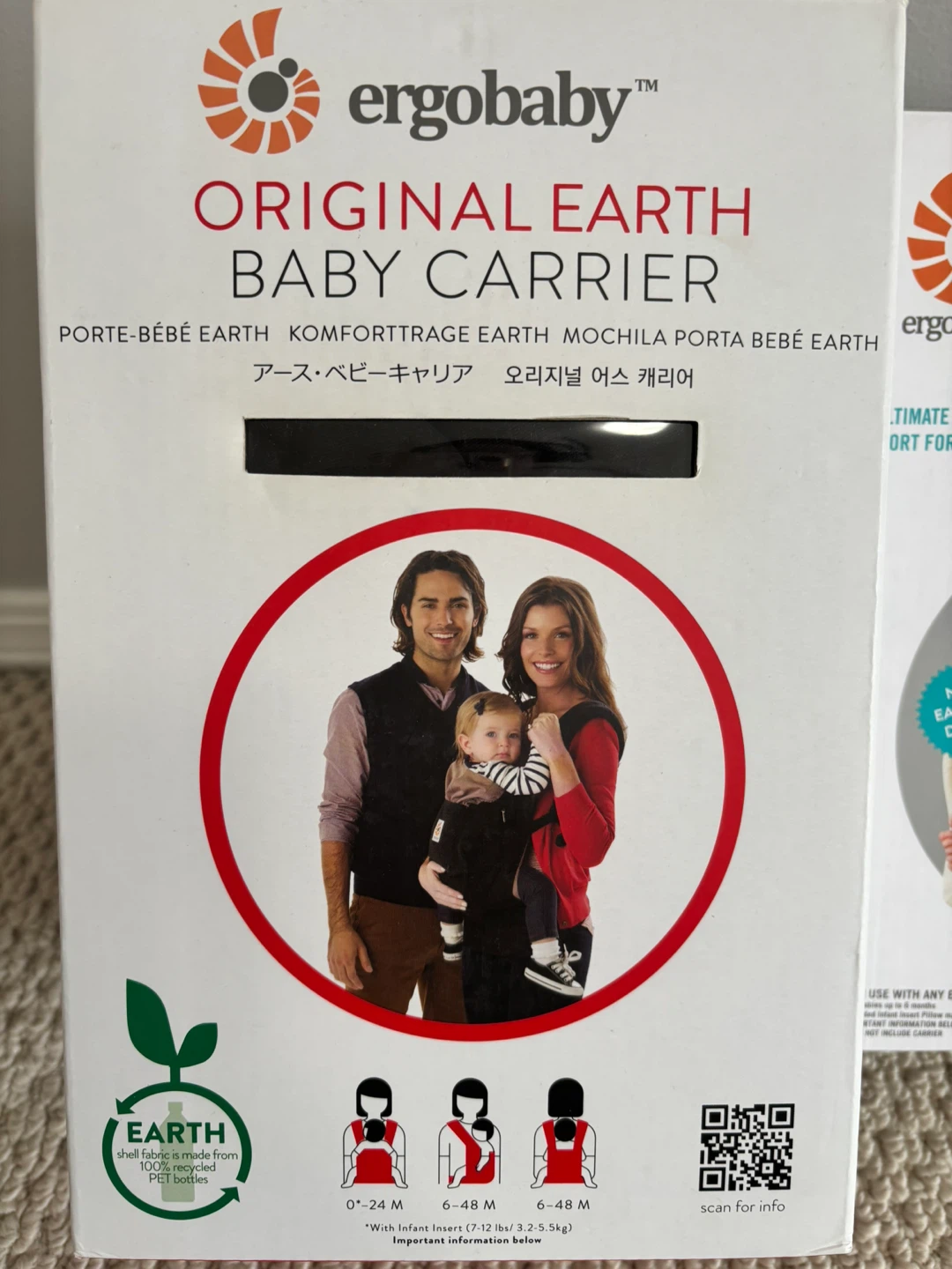 Selling an Ergobaby Original Earth Baby Carrier along with the infant insert! The carrier and insert both come in original box.