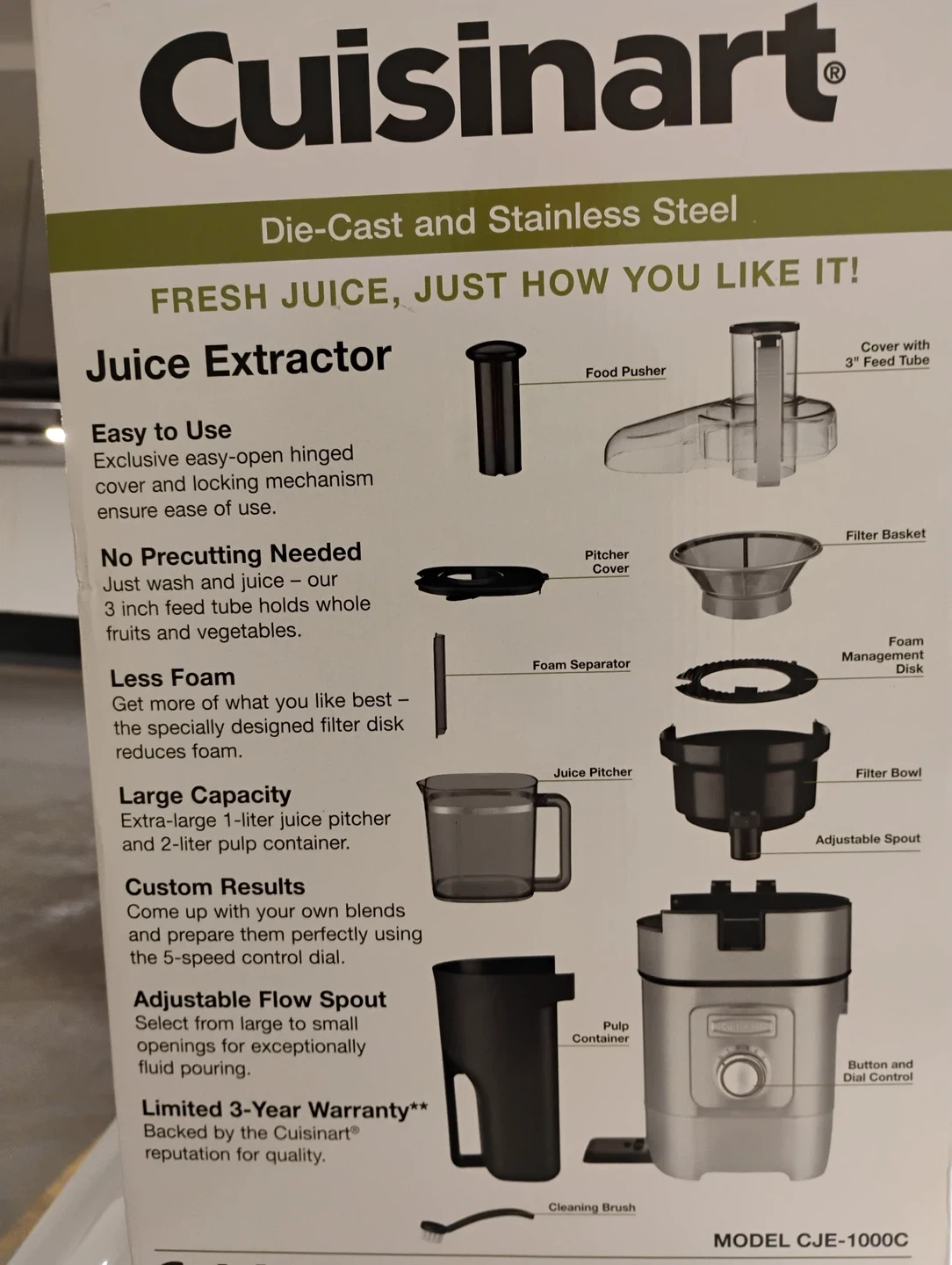 Get fresh juice just how you like it with this Cuisinart Die-Cast and Stainless Steel Juice Extractor! This model (CJE-1000C) features:
