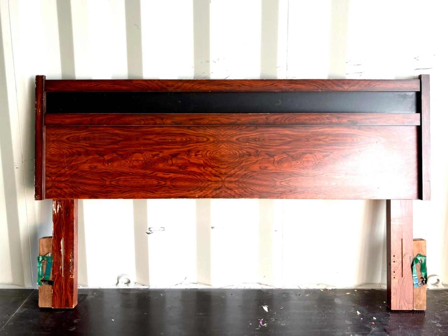 Selling a vintage wood headboard! It has a unique wood grain pattern and a dark brown and black colour scheme. Good diy project. Will measure. Headboard only