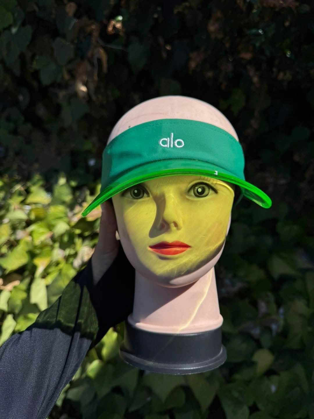 Selling an ALO Yoga visor in a vibrant green color! It's in great condition and perfect for sunny days or workouts