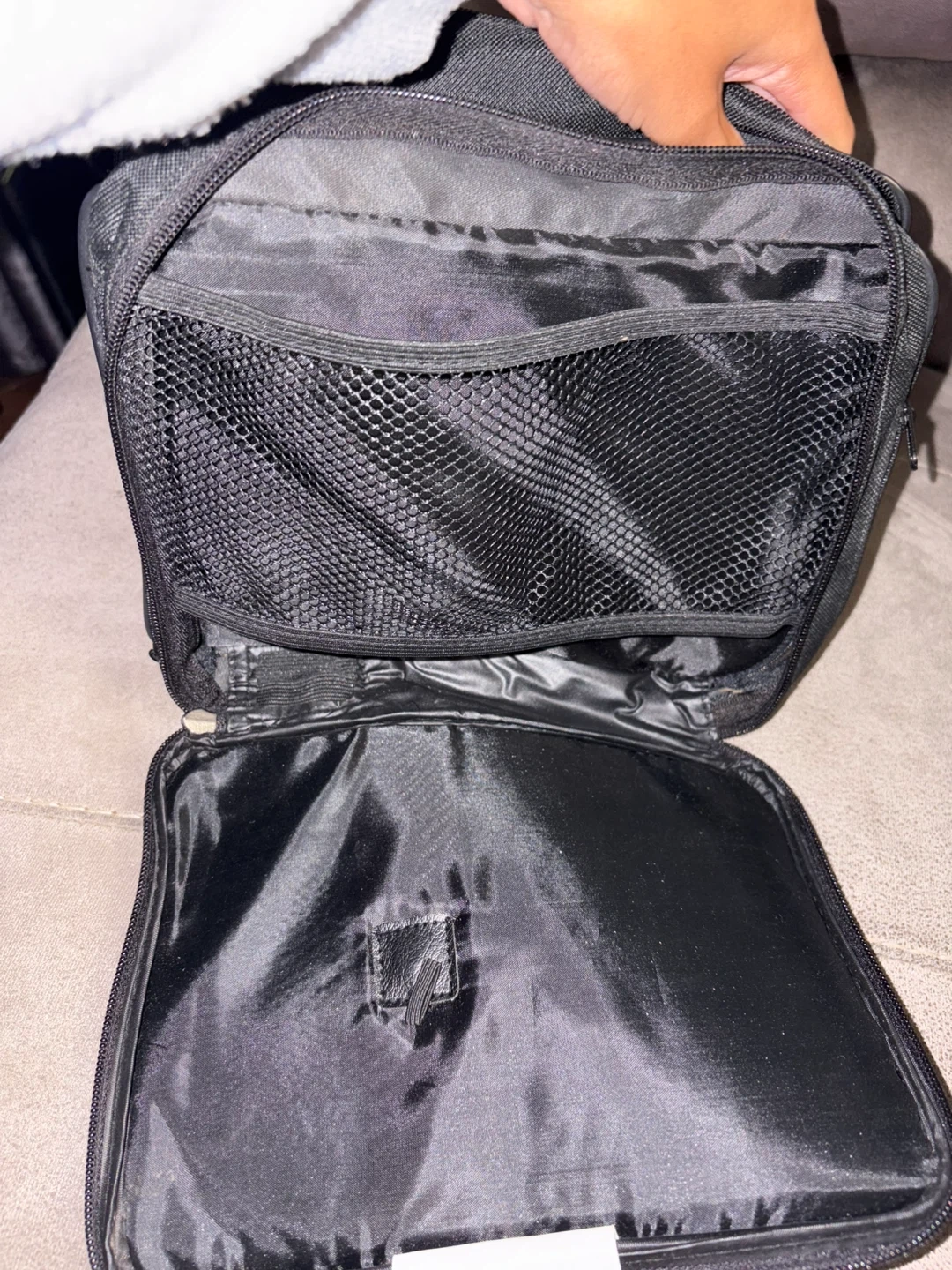 Selling a black travel bag, perfect for organizing your essentials on the go! It has multiple compartments to keep everything neat and tidy. Great for travel or everyday use. Barely used.