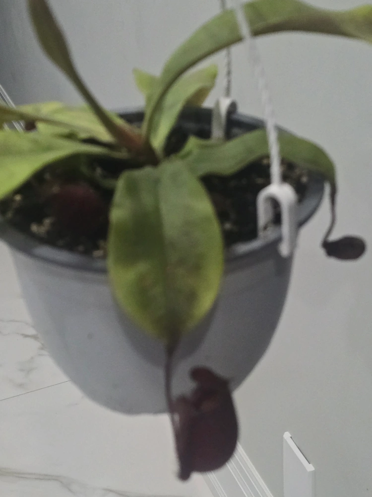 I'm selling a hanging pitcher plant. It's a unique and interesting addition to any indoor space! The plant is healthy and well-maintained, ready to bring a touch of nature to your home