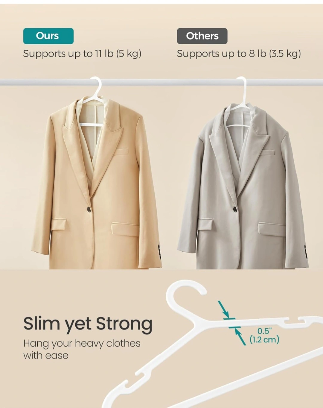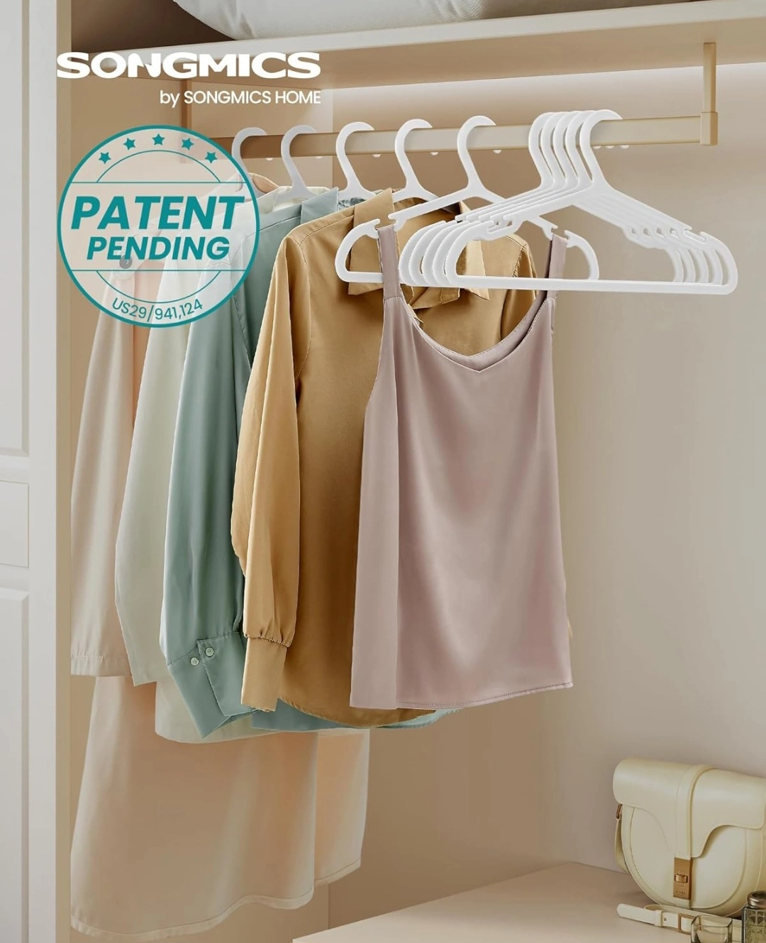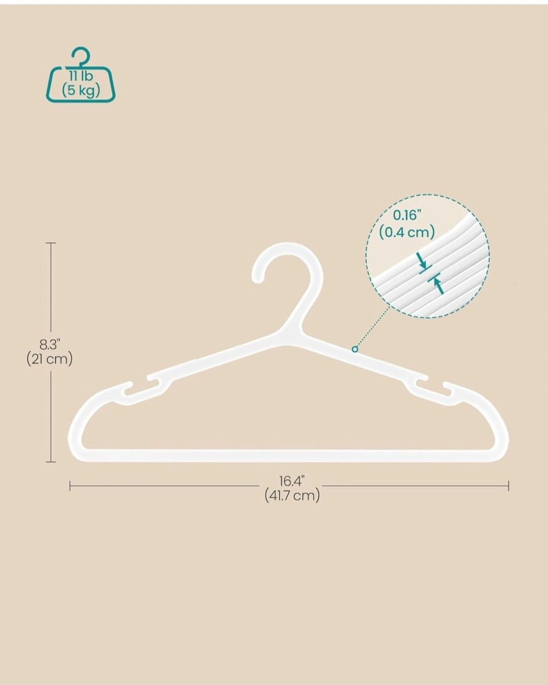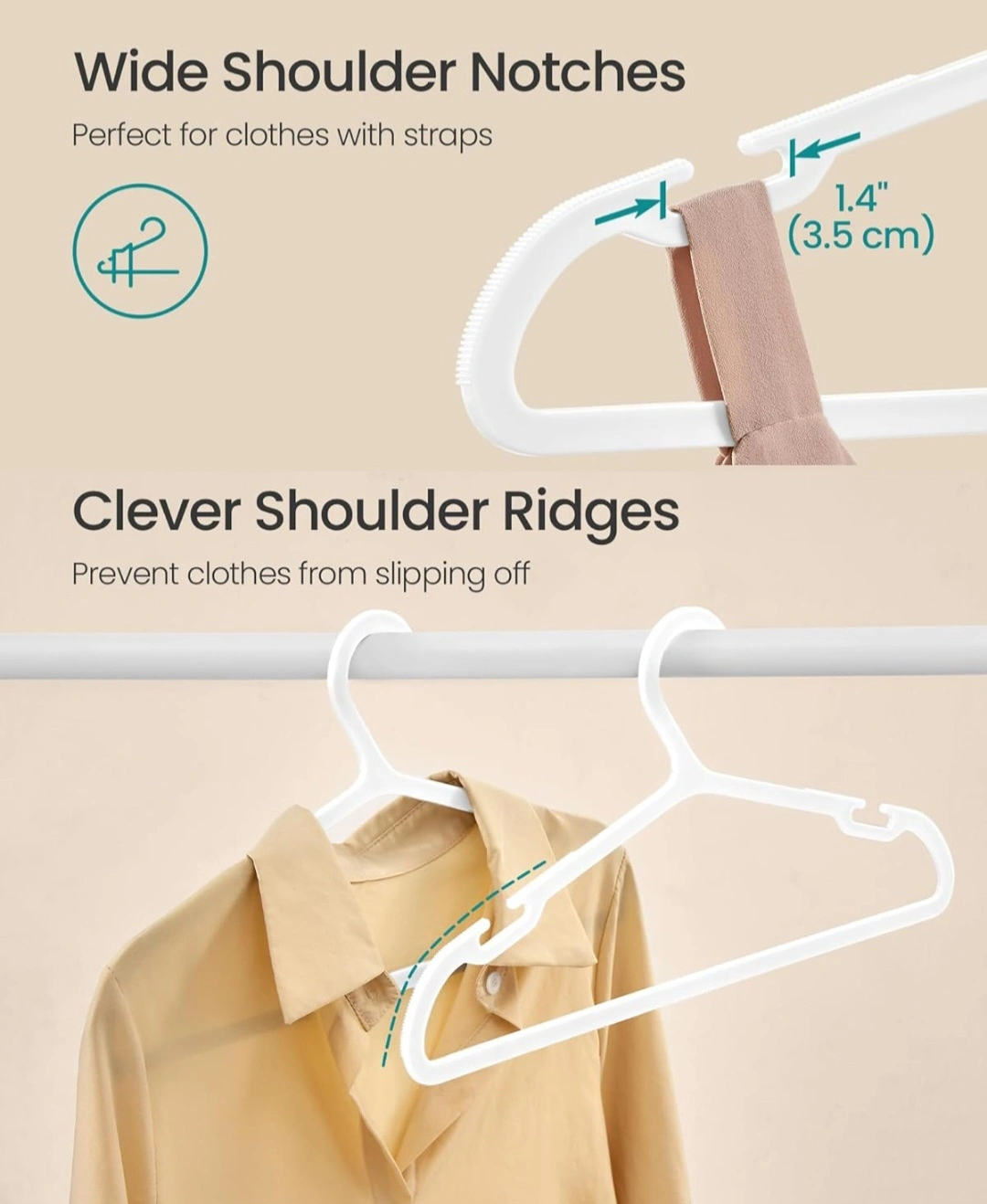 83SONGMICS Clothes Hangers, Pack of 50, Plastic Hangers, with Wide Shoulder Notches, Space-Saving Coat Hangers, 16.4 Inches Wide, for Closet, Cloud White UCRP010W01. 748