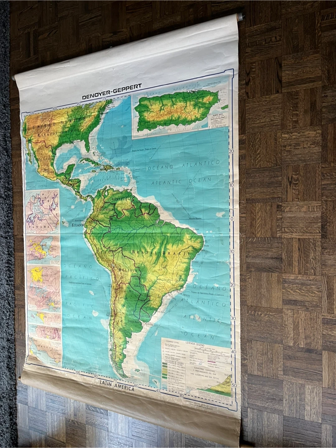 Here's a Denoyer-Geppert map of Latin America! Great for educational purposes or as a cool vintage decor piece
