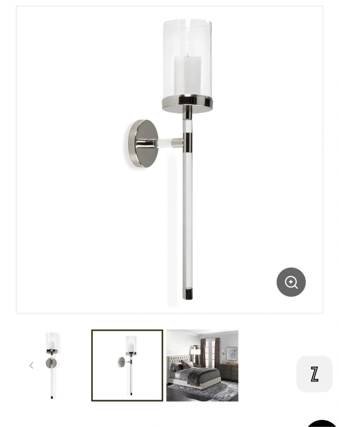 This is an Ethan Sconce wall light. It features a clear glass shade and a polished nickel finish. The fixture has a glass rod accent. It's a modern design for your home.