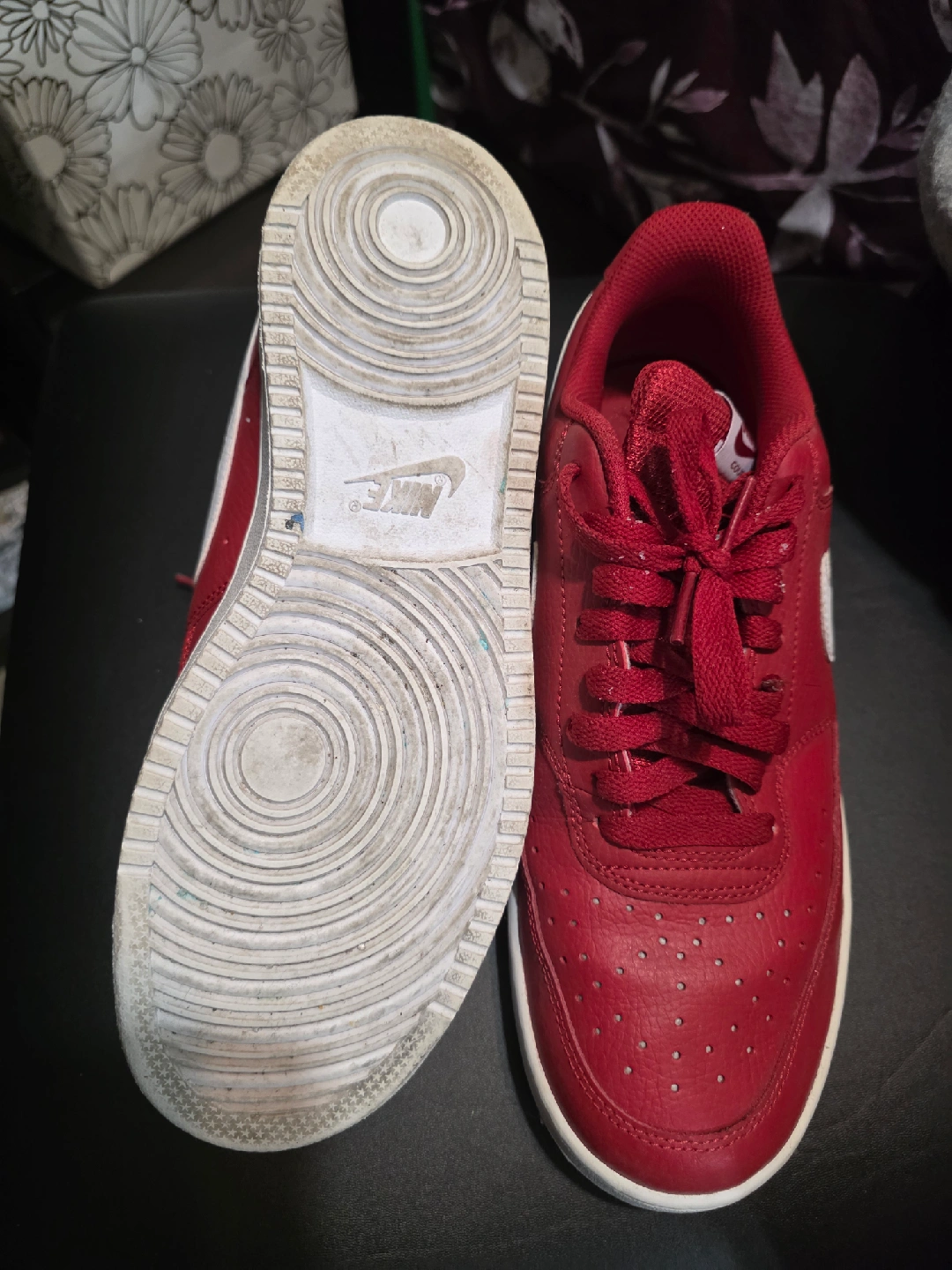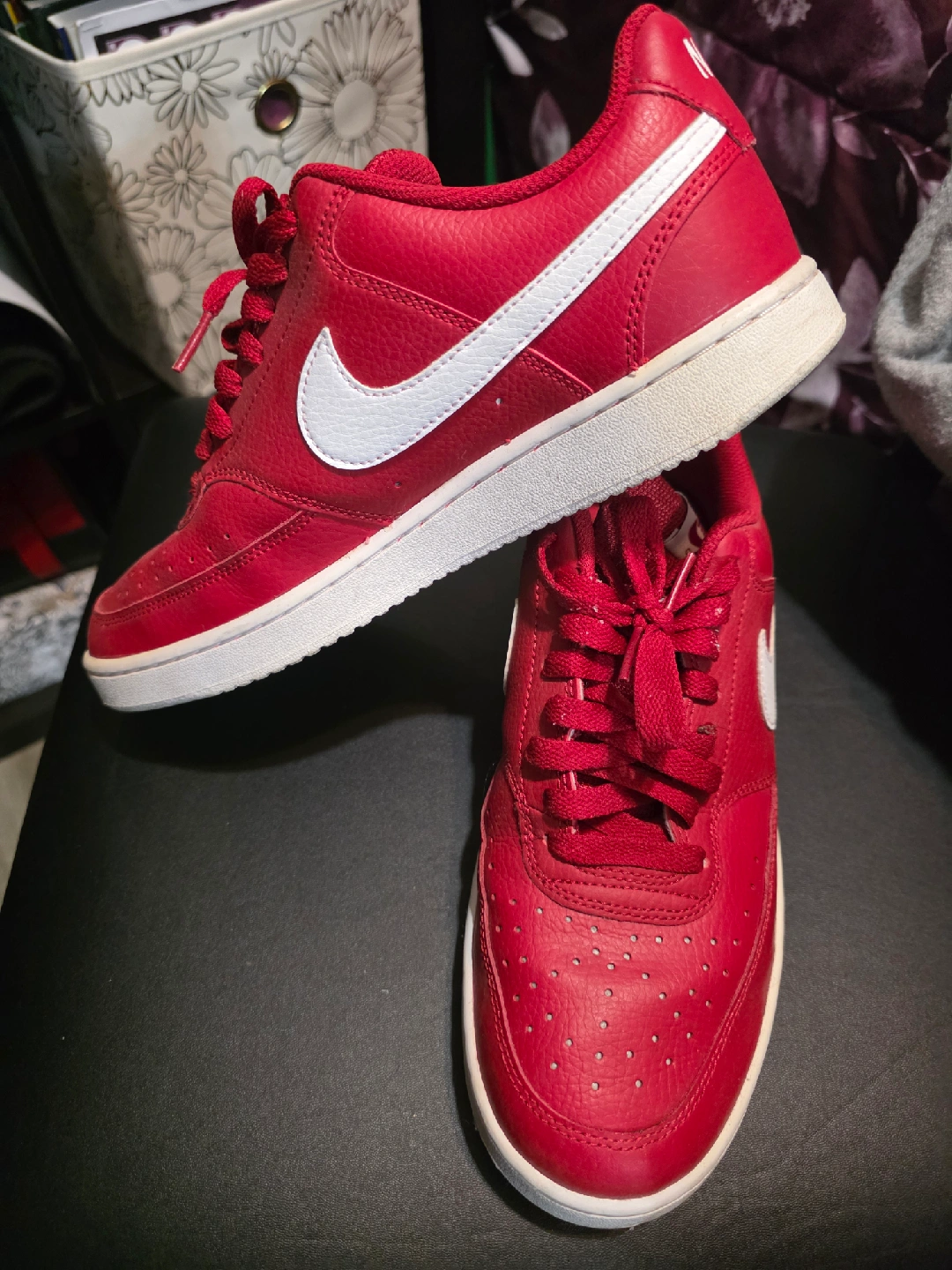 Selling a pair of red Nike Court Vision Low sneakers. They are in almost new condition and ready for a new home!