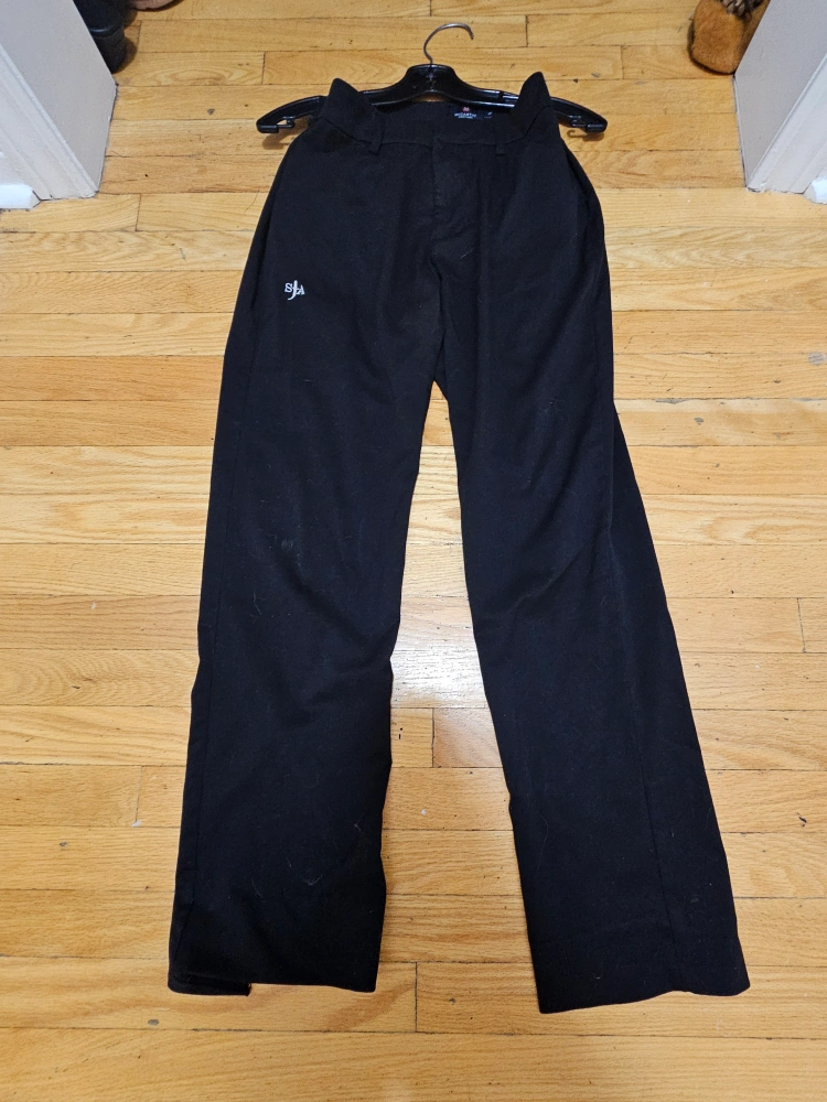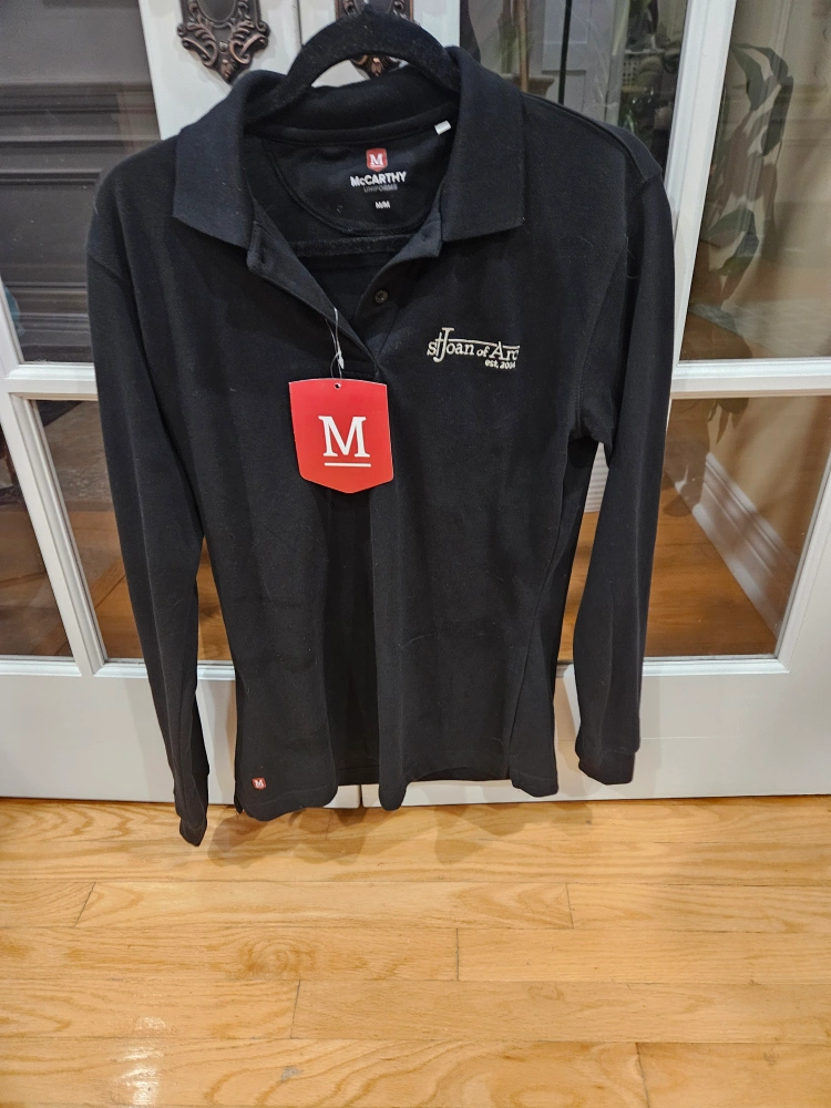 74Selling a McCarthy Uniforms polo shirt for St. Joan of Arc. It's a long-sleeved polo in size M. It's black and in great condition! 1 pair of pants only worn barely 1 semester just like new.