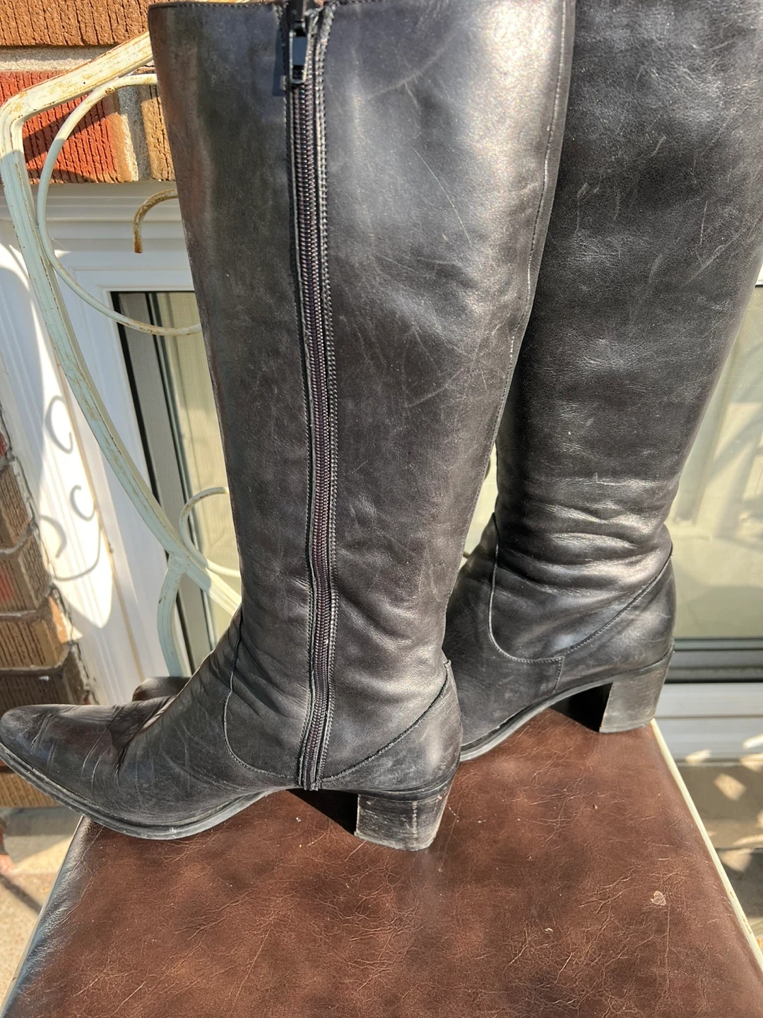 Selling a pair of black Italian knee-high boots. They have a zipper and are made of leather. Perfect for fall or winter!