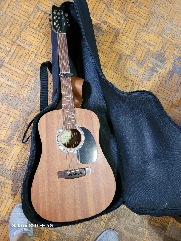 Selling a Samick acoustic guitar, model number TW-015. It comes with a case, tuner, and picks. Great for anyone looking to start playing or upgrade their current instrument!..everything in pic for 125$