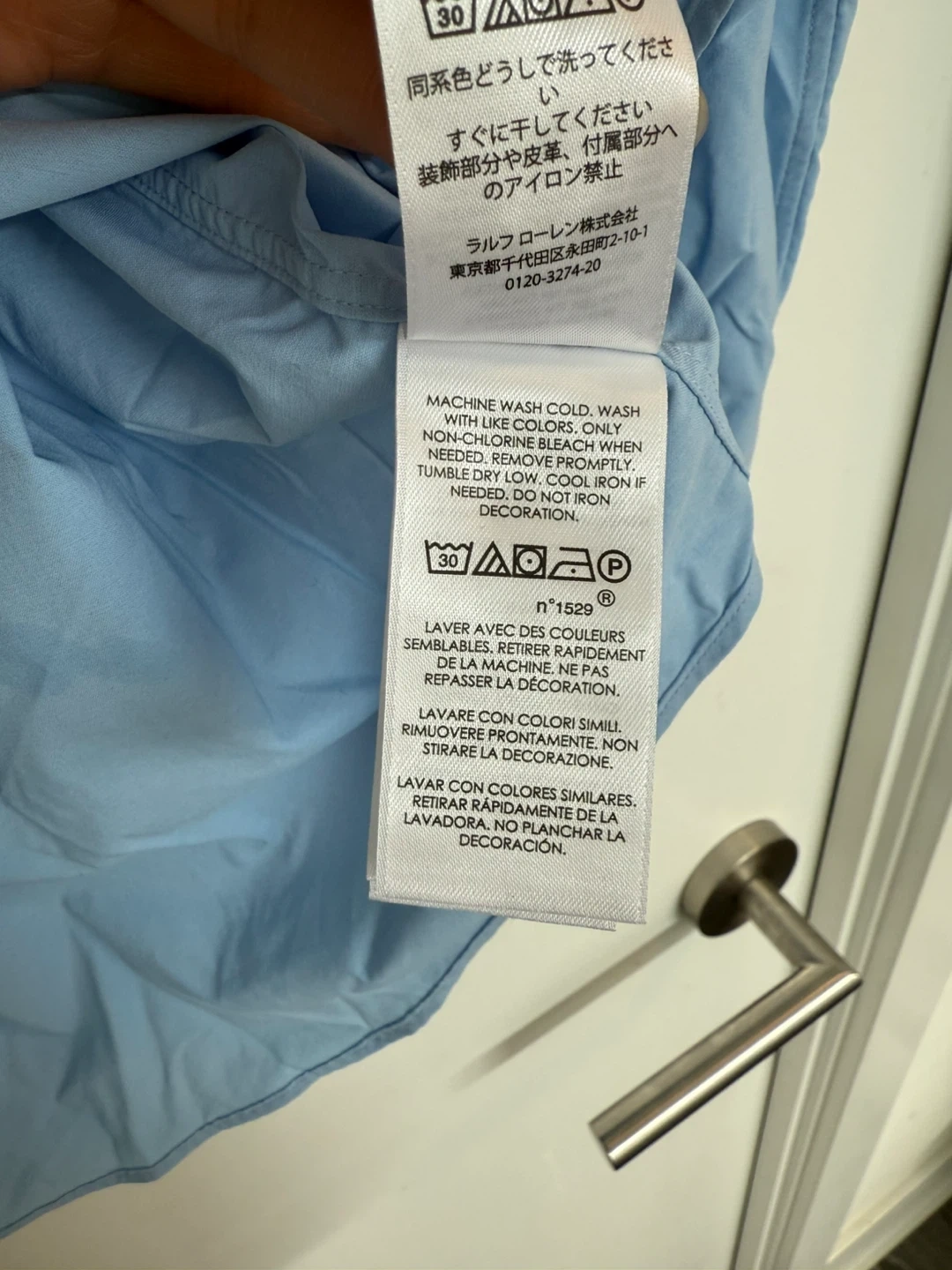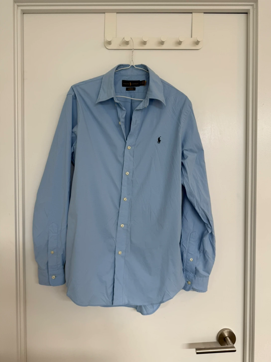 Selling a Ralph Lauren Classic Fit Performance shirt in a lovely light blue! It's a size medium and made from a comfortable blend of 54% polyester and 46% nylon. Perfect for a smart casual look!