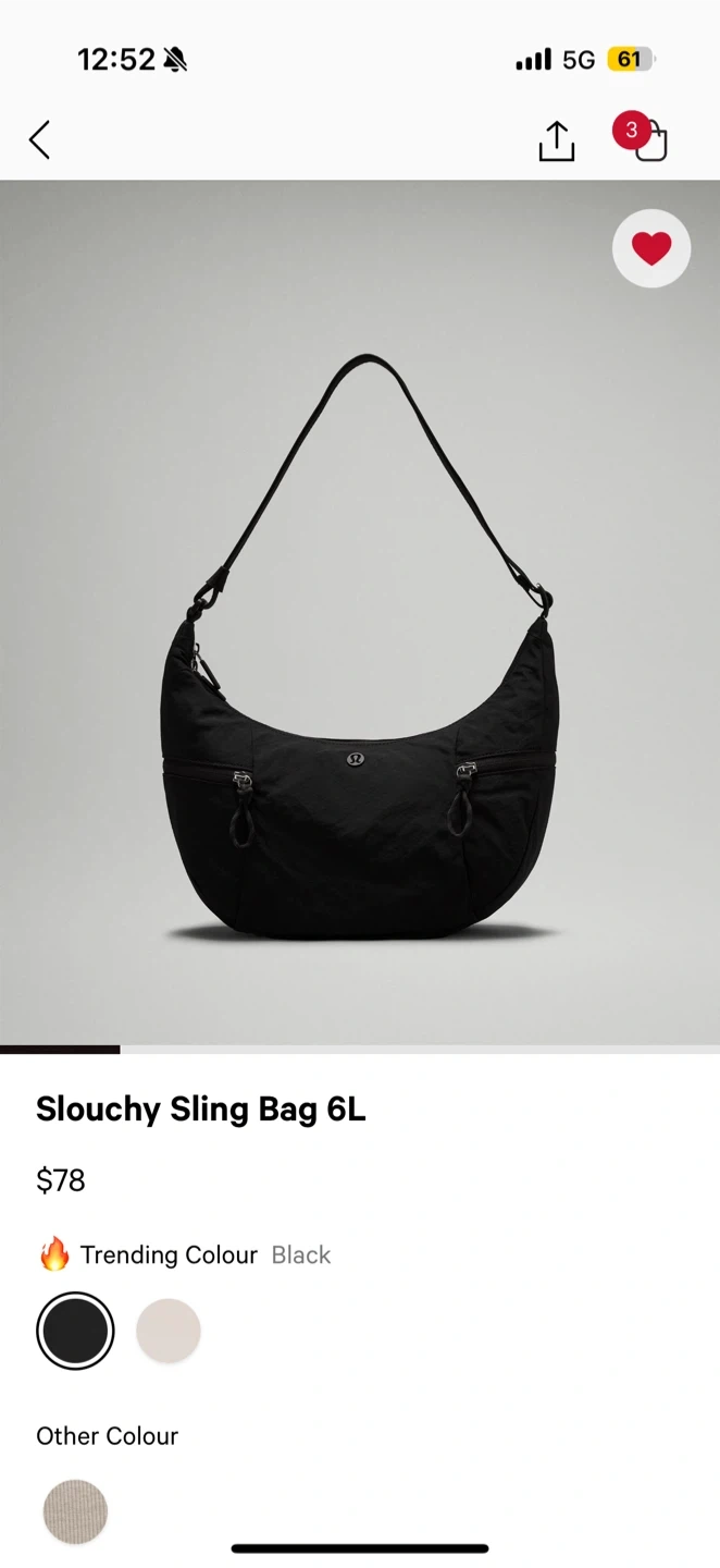 Selling a Lululemon Slouchy Sling Bag with a 6L capacity in black! It's in great condition and ready for a new home.