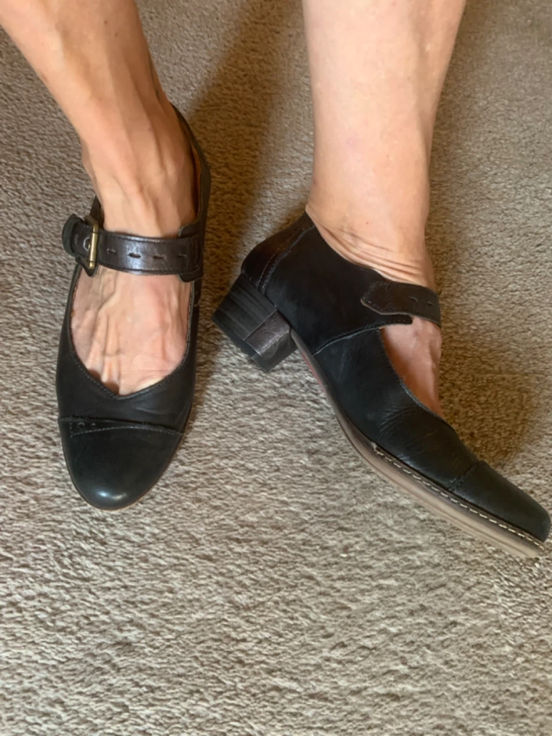 Cute black leather Mary Jane style shoes! They are in GREAT condition and ready for a new home. Hardly worn. Perfect for dressing up or down, these shoes are a versatile addition to any wardrobe. Genuine leather with little heel. Super comfortable. Just sitting in the back of my closet.