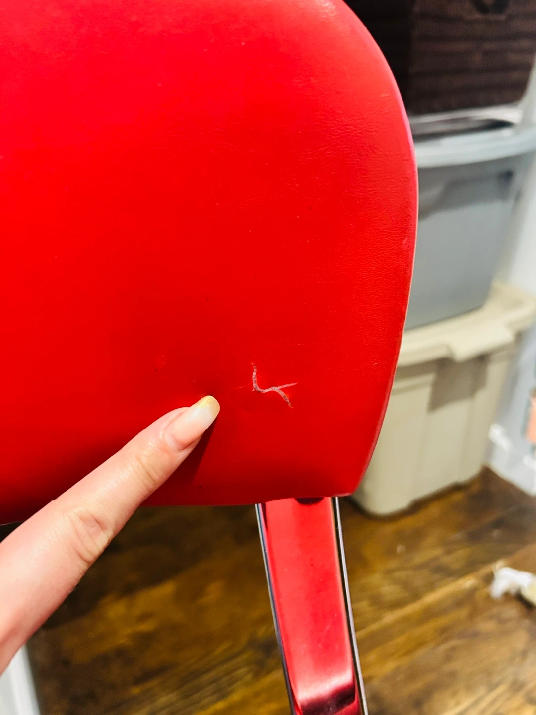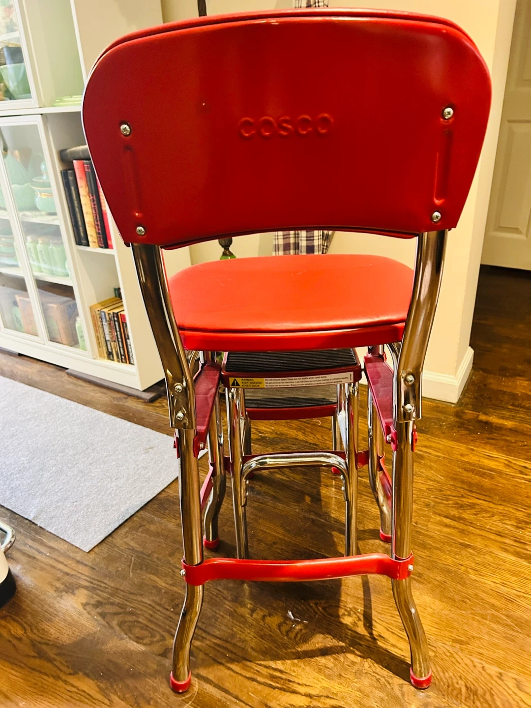 Selling a vintage style Cosco step stool chair! It's red with chrome legs. There is a small scratch on the front of the chair as pictured, but it's otherwise in great condition!