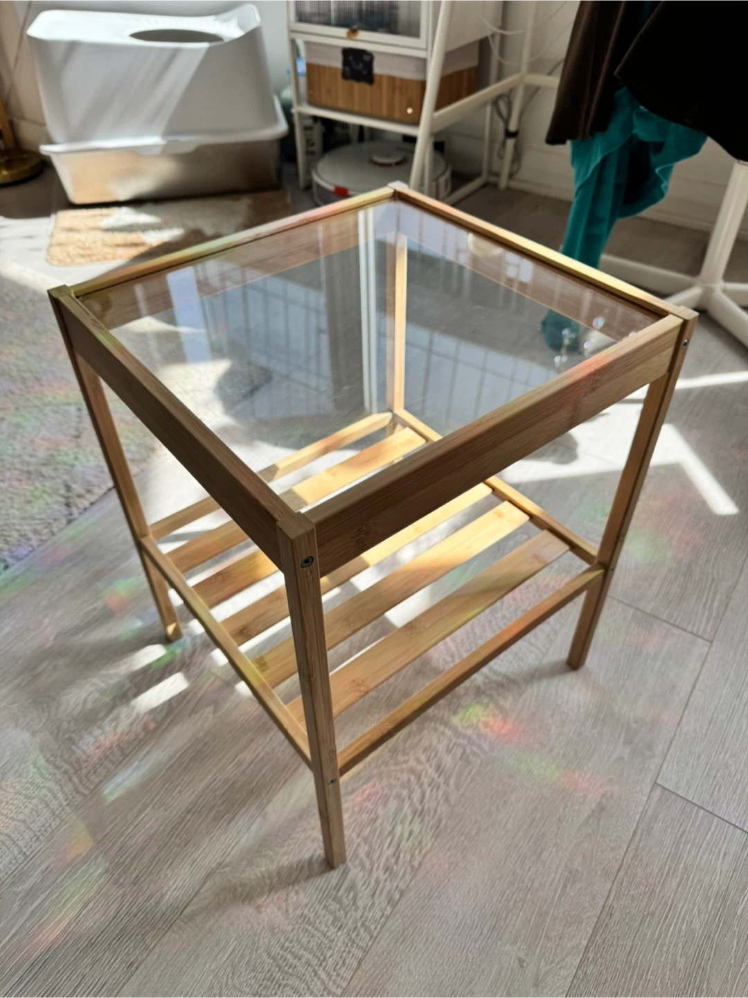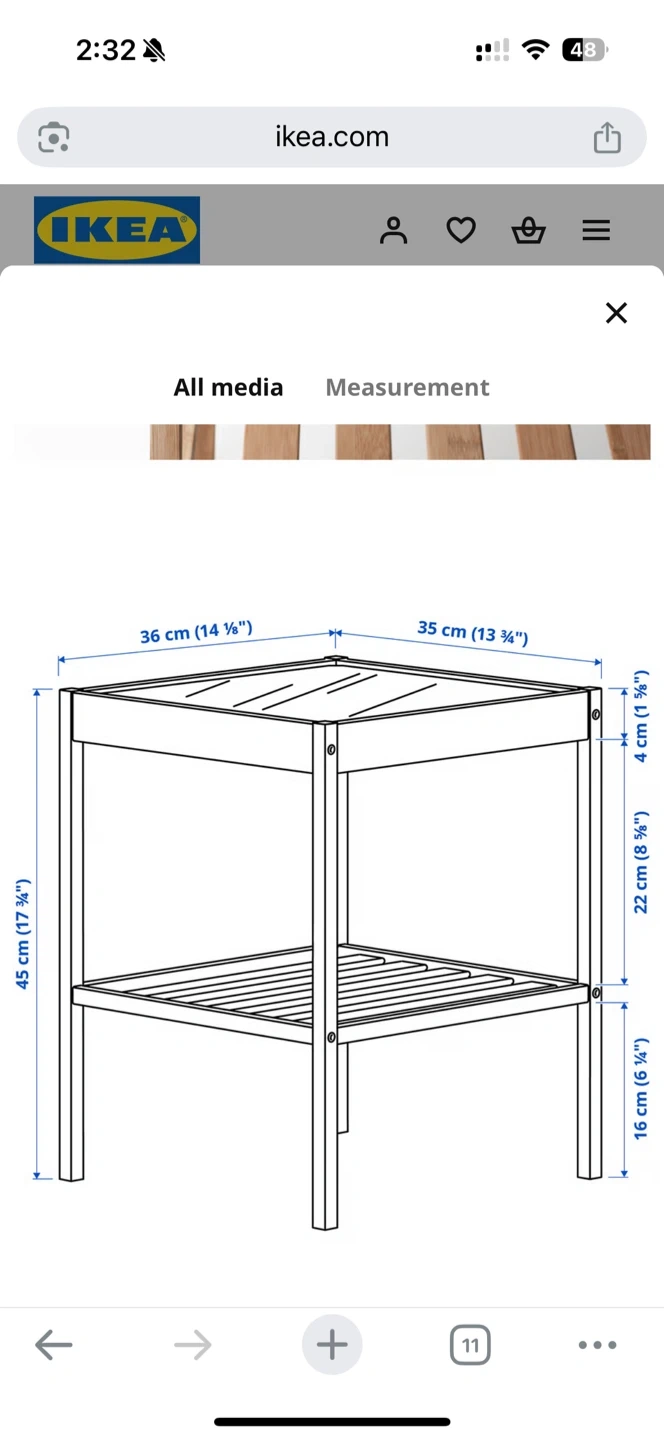 Selling a gently used IKEA Gladom side table! It's perfect as a small table next to a bed or sofa. The dimensions are 36 cm x 35 cm x 45 cm. It's lightweight and easy to move around