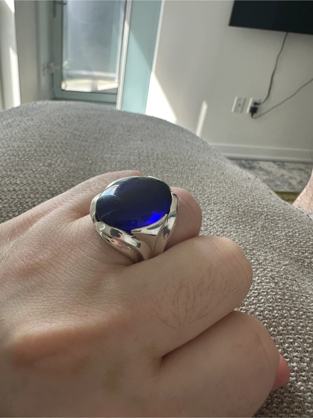 The elegant silverwork beautifully frames the deep blue stone, making this ring a standout accessory for both everyday wear and special occasions. It’s in excellent condition and ready to be cherished by its next owner.