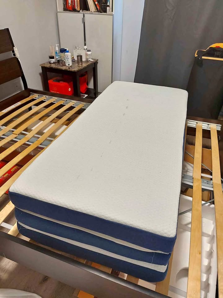 Good condition, barely used, Queen size trifold foam mattress. Dimensions: 198 × 145 sq.cm (10cm thickness) / 78 × 57 sq.inches (4 inches thickness)