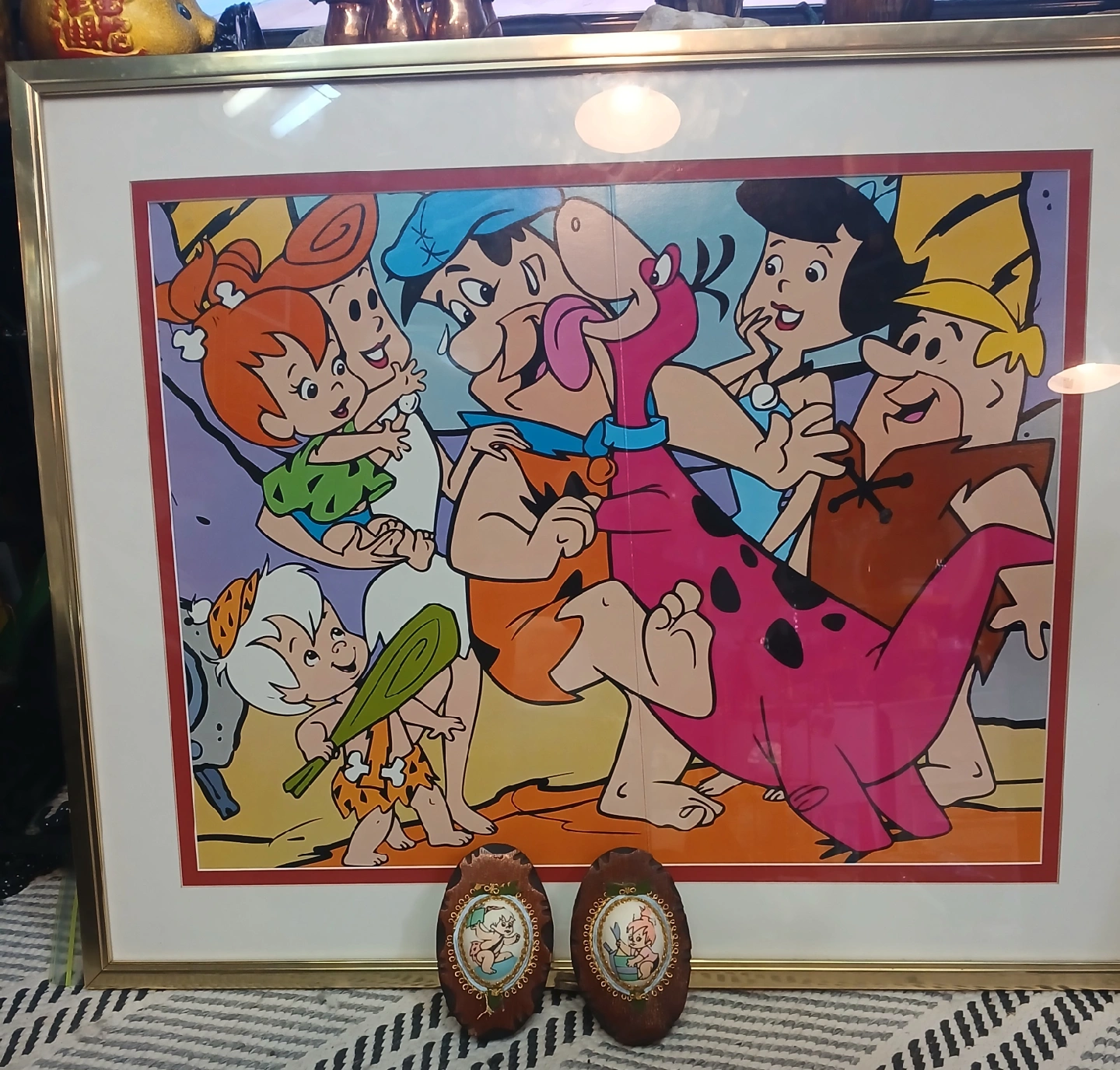 Vintage "The Flintstones " Framed Picture & Wall Decor Bundle.