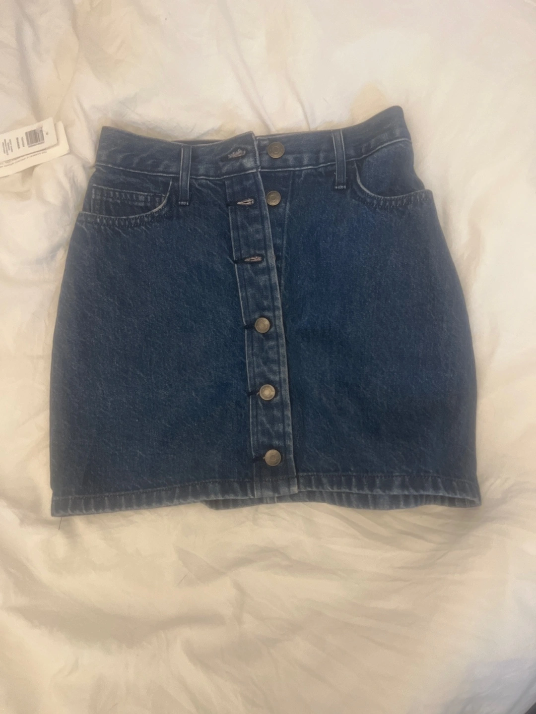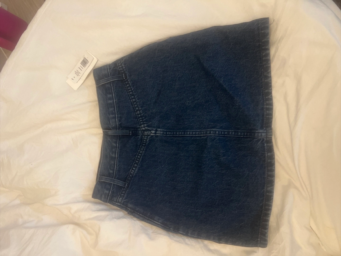 Selling a Wilfred Free Shania denim skirt in a deep dark indigo colour. It's a size 00 and features a button-up front. Originally bought for $98!
