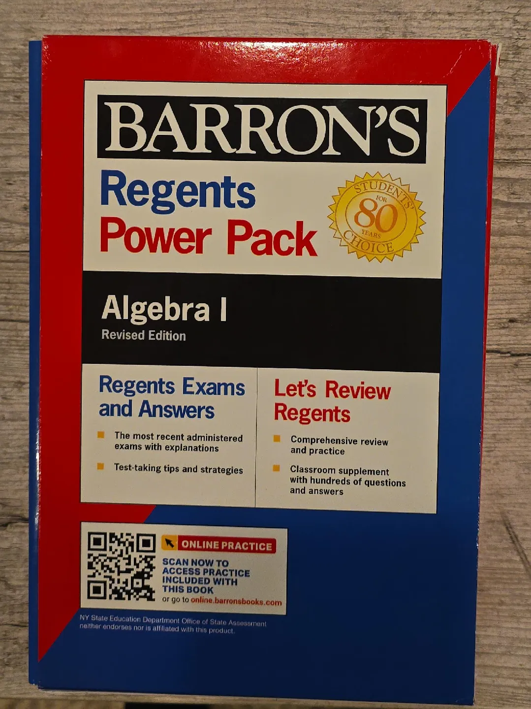 Selling a Barron's Regents Power Pack for Algebra I, Revised Edition! This power pack includes Regents Exams and Answers, with the most recent administered exams and explanations, as well as test-taking tips and strategies. It also includes Let's Review Regents, with comprehensive review and practice and classroom supplement with hundreds of questions and answers. Scan the QR code for online practice included with this book!