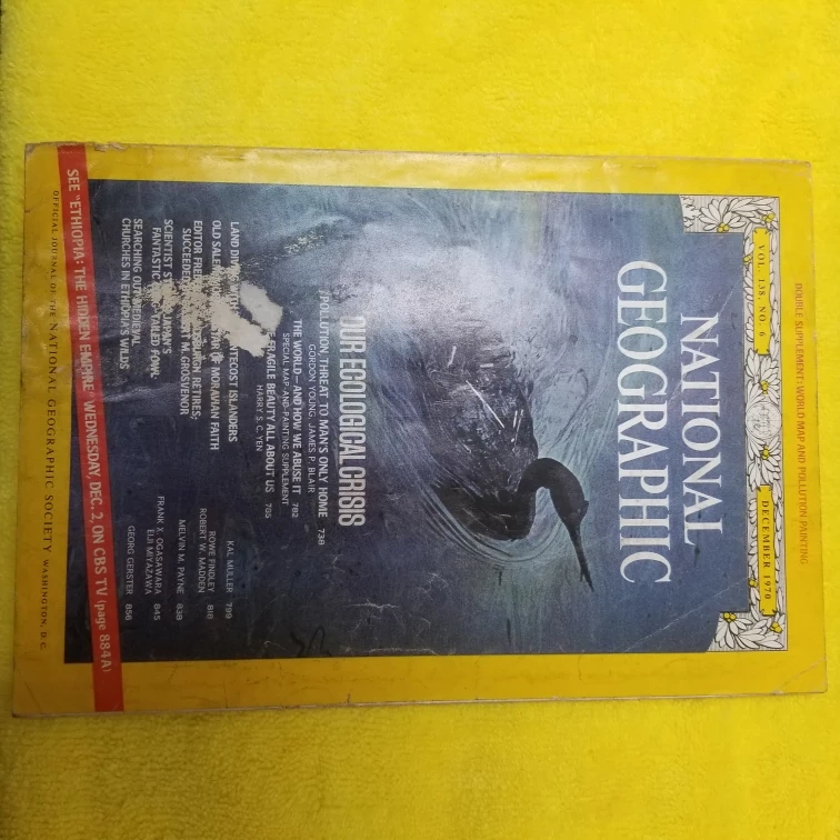 Selling a National Geographic magazine from December 1970. It features articles on ecological issues and other topics of the time. A great piece for collectors or anyone interested in history and environmental studies
