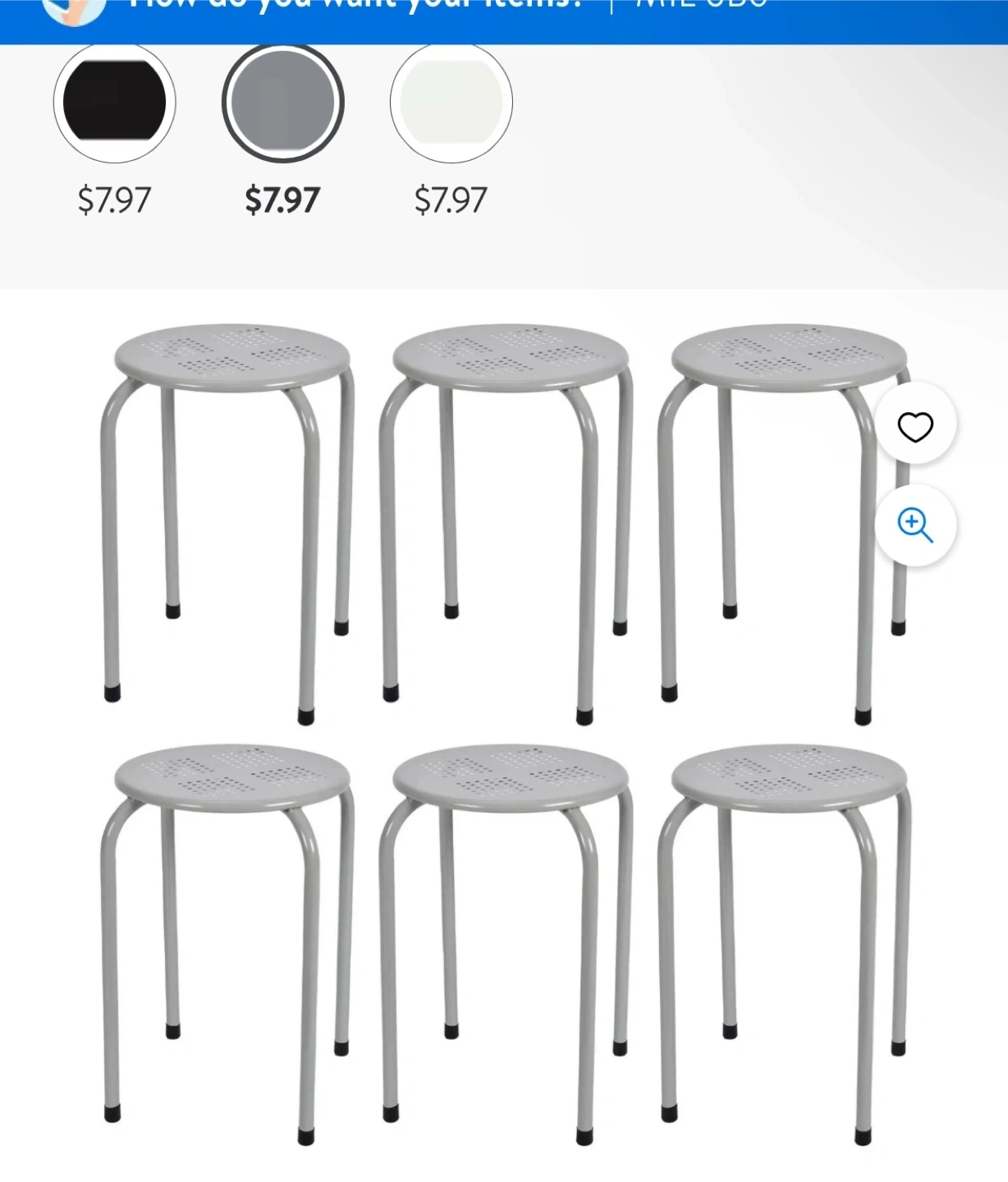 I have some brand new grey metal stacking stools available. They're still in their original packaging! These are great for adding extra seating and can be easily stored when not in use. They're lightweight and easy to move around too. Take all 6 pcs $20