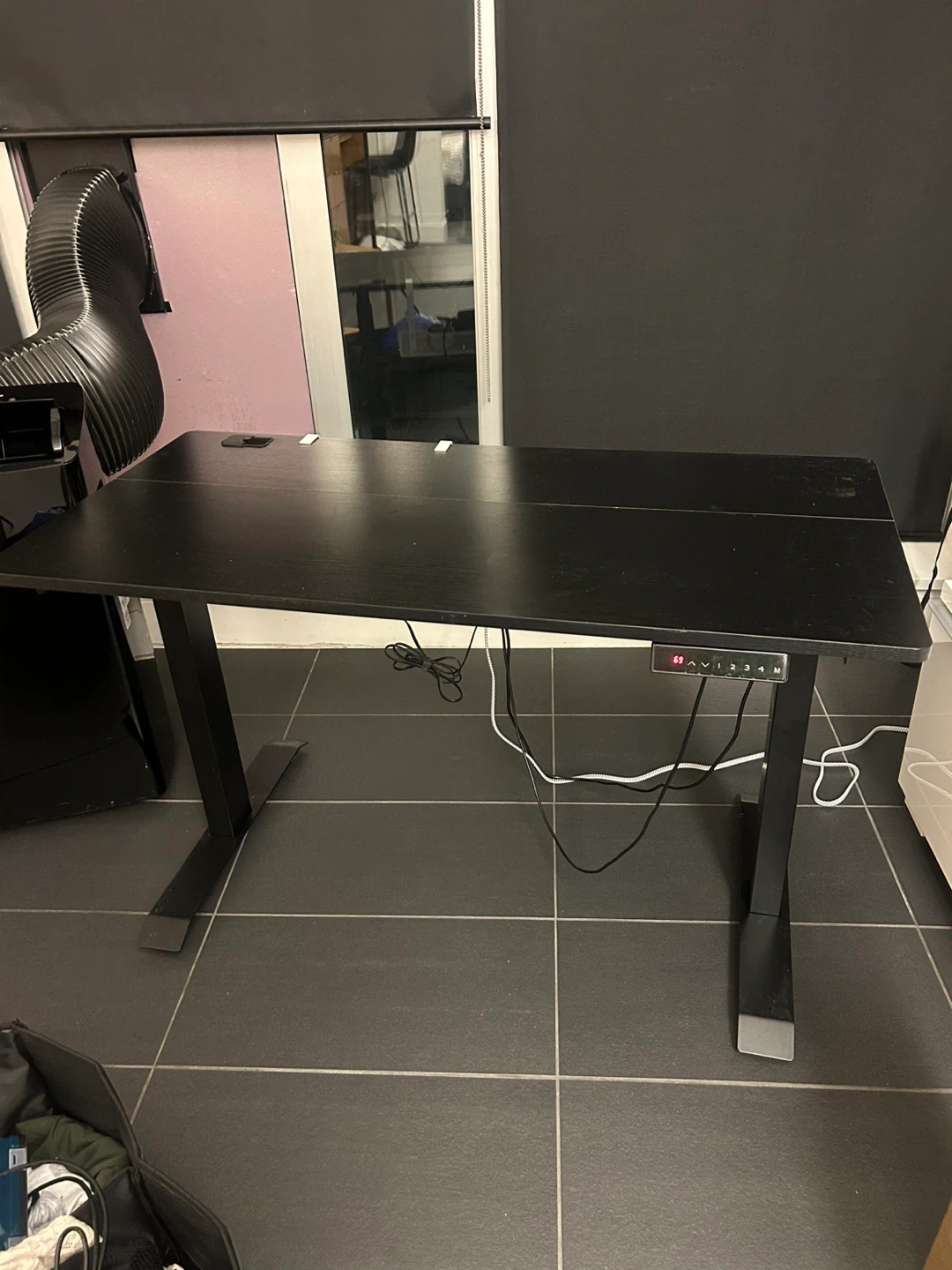 Selling a black adjustable standing desk in great condition! It's perfect for setting up a home office or upgrading your current workspace. It's sturdy and reliable, and the adjustable height makes it super versatile for different users and tasks.