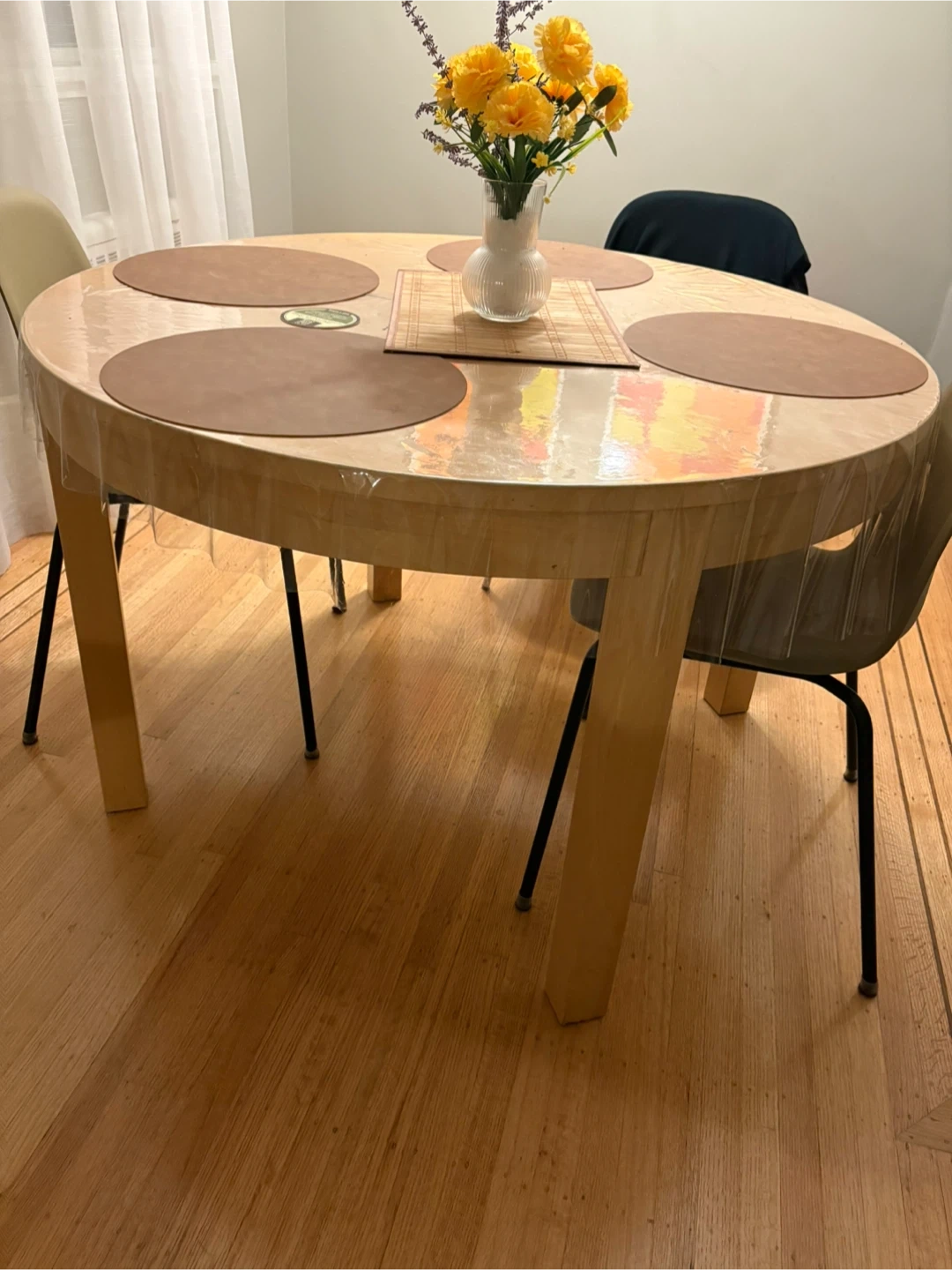 Selling an IKEA Bjursta extendable dining table! It's perfect for smaller spaces but can easily be expanded for when you have guests over. It does have some signs of use, as shown in the pictures, but is still a functional and stylish piece for any dining area