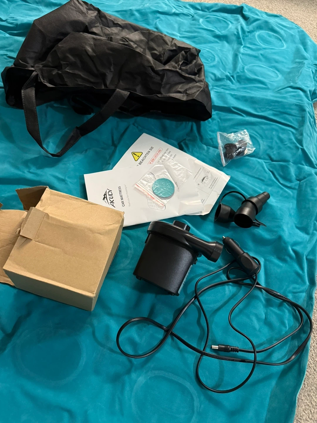 Description: AKUDY car mattress Open Box, new, Includes all accessories, pump and parts. Perfect for a car, SUV, or Truck Bed. 76 x 50x 6 Inches,it fit all most car such as MPV, SUV, and recreational vehicle.