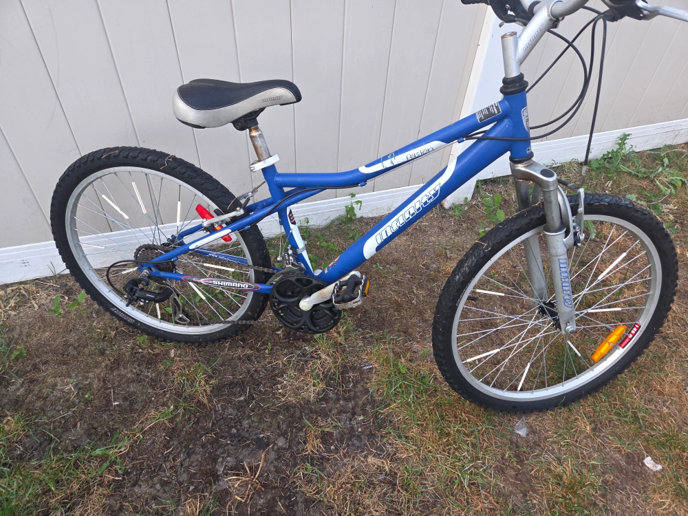 Selling an Infinity Fuzion mountain bike in blue. It's in good used condition and ready for some trails or city riding! It has Shimano components.newish tires(1seasonand a bit)front shocks,everything works as it should.
