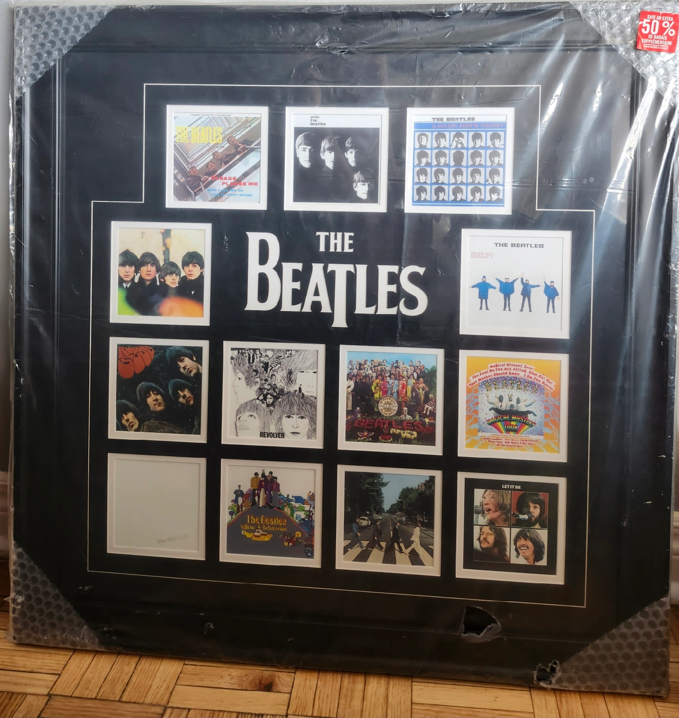 Selling a framed collection of The Beatles album covers. It's sealed and in great condition and ready to hang! A perfect piece for any Beatles fan to add to their collection