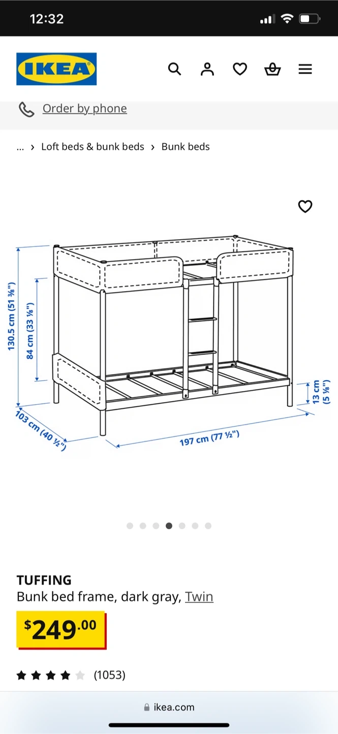 IKEA TUFFING Bunk Bed Frame, Dark Gray, Twin