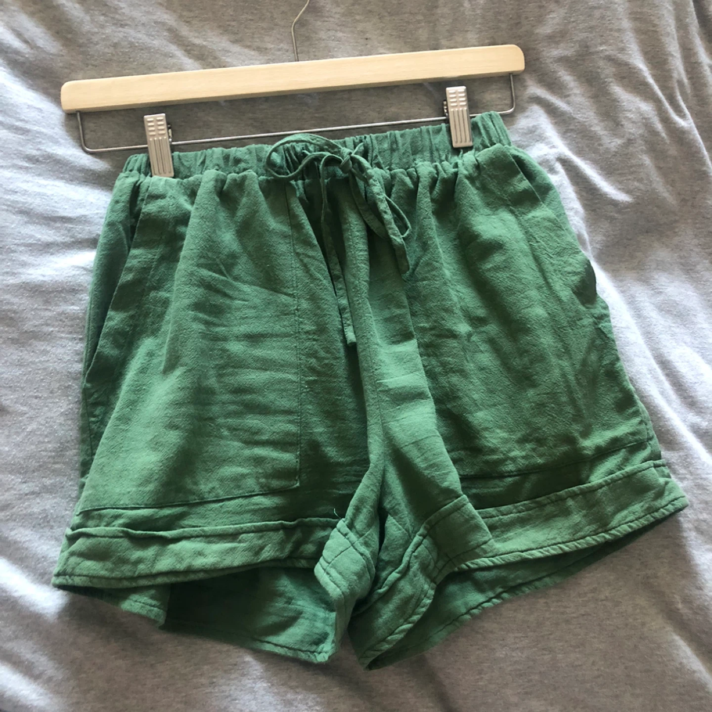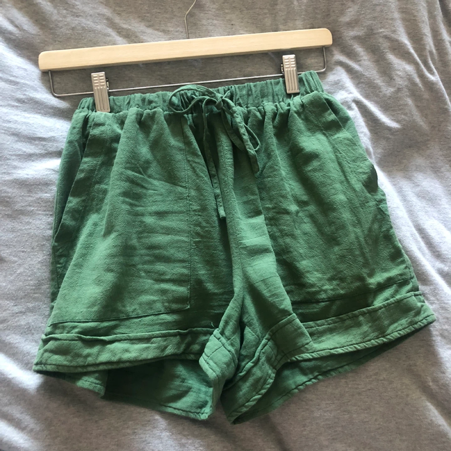 Selling a pair of gently used forest green linen shorts. Purchased last year at a flea market and kept in storage :)