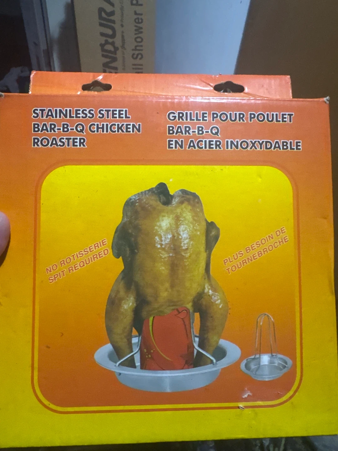 Get ready to roast the perfect chicken with this stainless steel Bar-B-Q roaster! It's designed for easy use, with no rotisserie spit required.Pick up Scarborough golf club rd n Lawrence