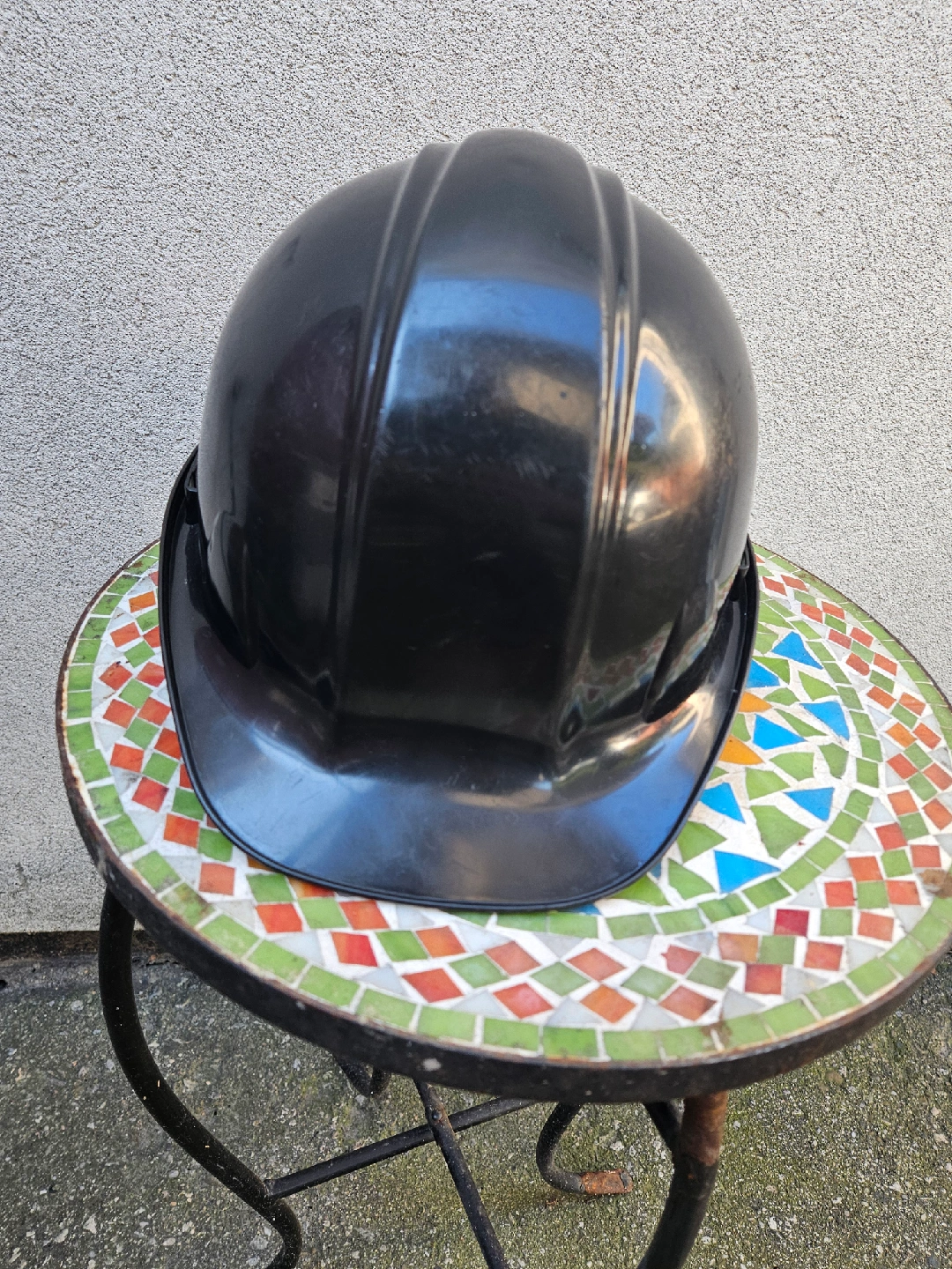 Selling a black hard hat that's in good condition. It's perfect for construction or any job site where head protection is needed. It has some signs of use, but it's still fully functional and ready to go!