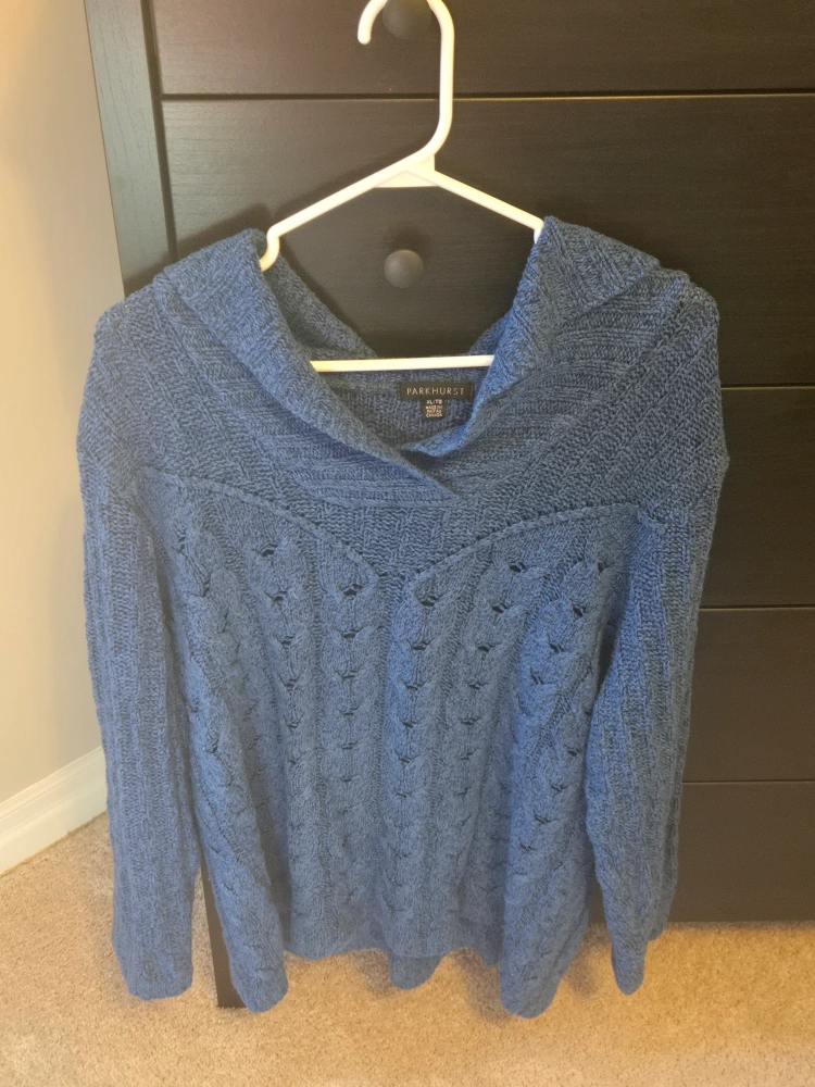 Cozy blue knit sweater from Parkhurst in size XL. Perfect for layering or wearing on its own. It's in great condition! Selling for $5, pickup only.