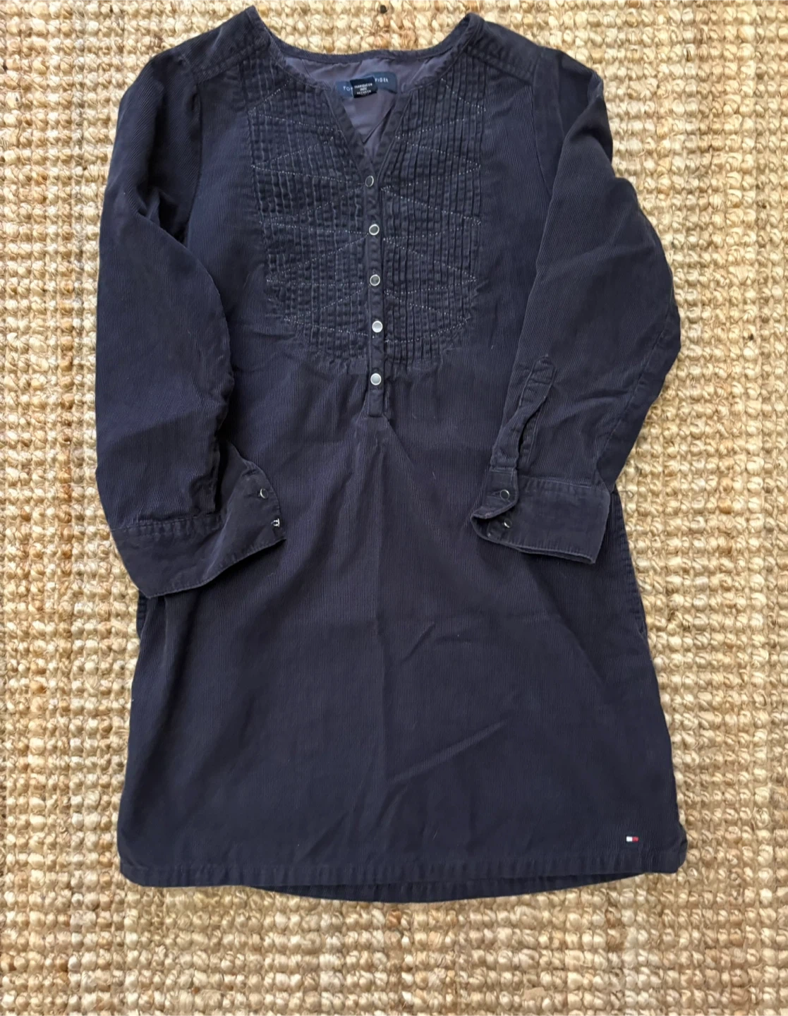 A cute Tommy Hilfiger corduroy dress in a navy blue colour! It's a girls size 5, perfect for layering or wearing on its own.